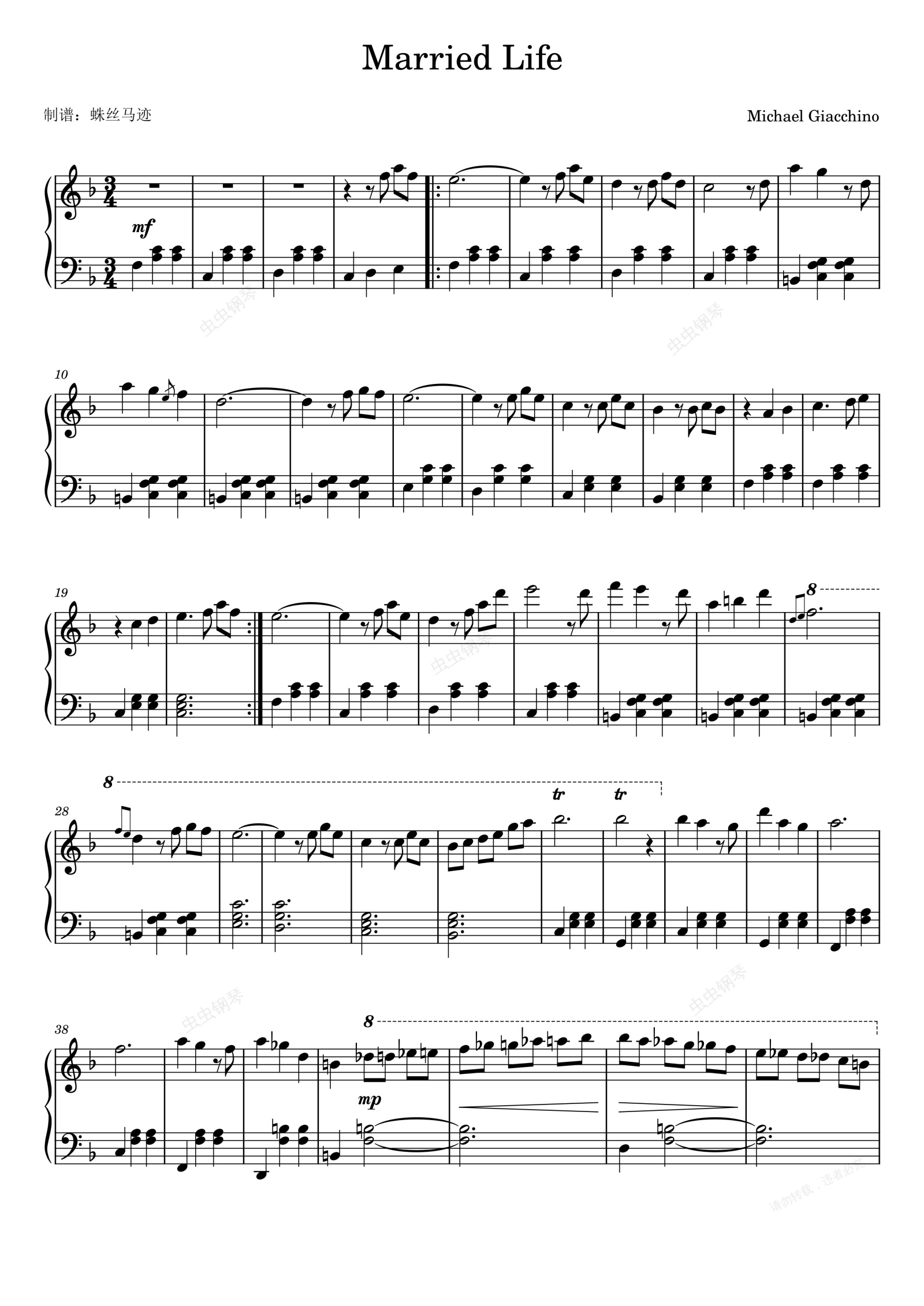 钢琴谱:飞屋环游记 主题曲 Married Life-Michael Giacchino