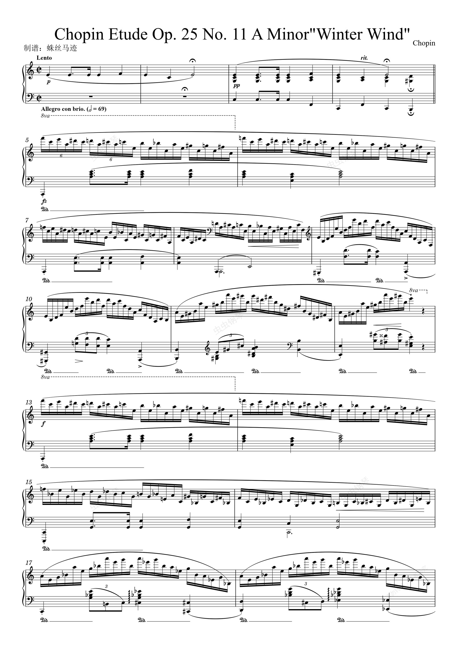 钢琴谱:肖邦练习曲 -冬风-Chopin Etude Op. 25 No. 11 A MinorWinter Wind