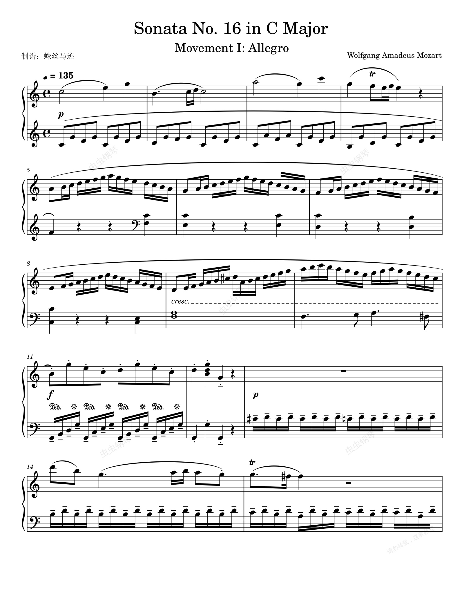 钢琴谱:莫扎特C大调第十六钢琴奏鸣曲 第一乐章K.545