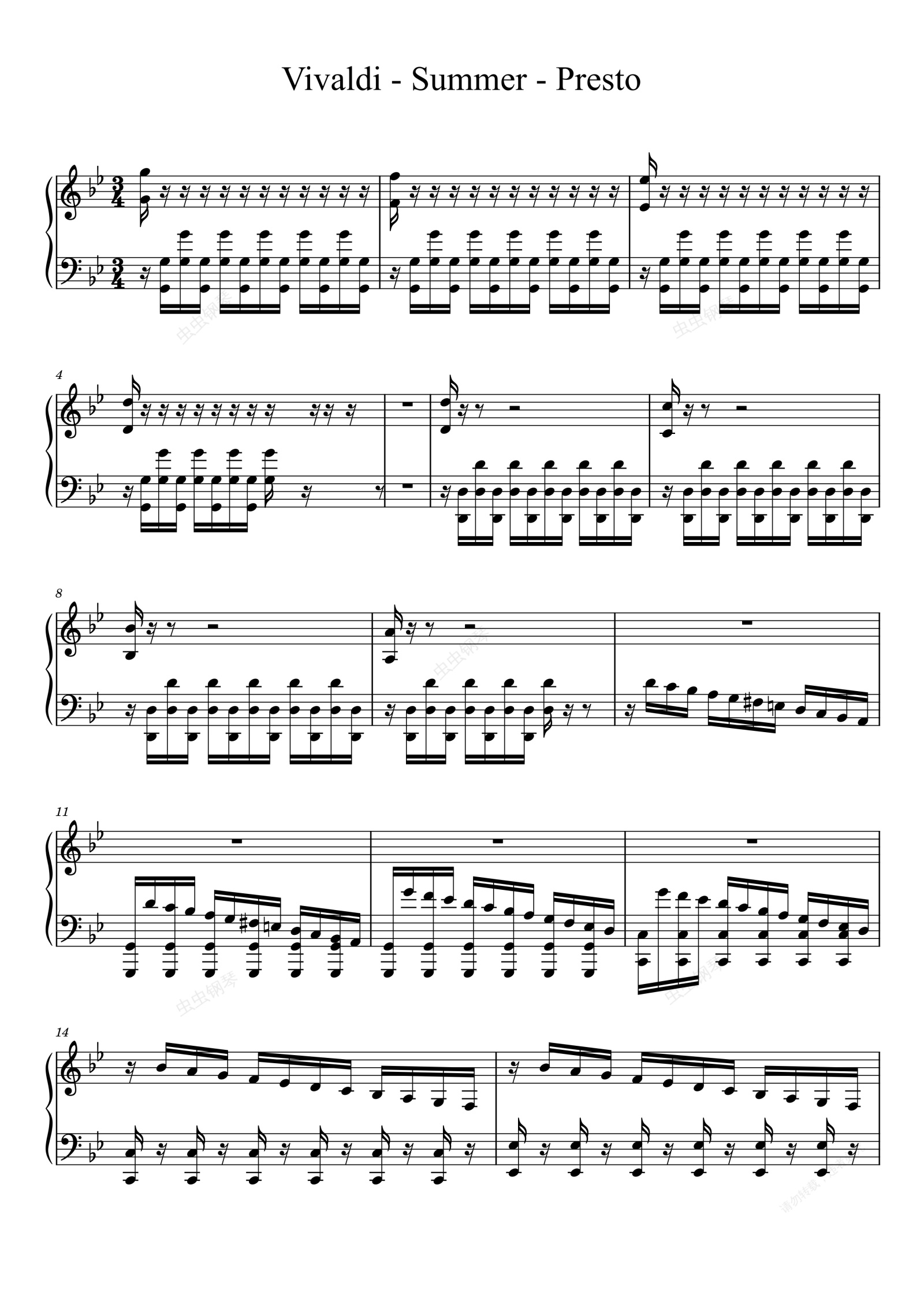 钢琴谱:Vivaldi - Summer 维瓦尔第- 四季 夏 钢琴独奏版