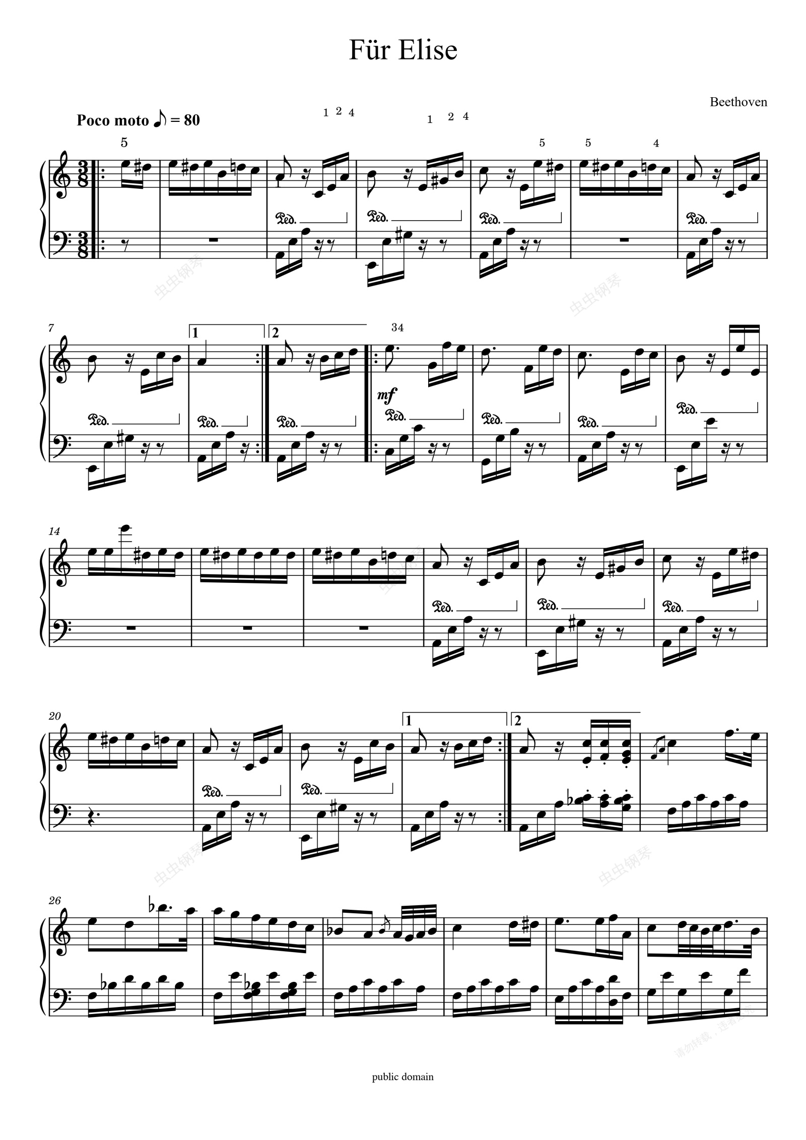 钢琴谱:Fur Elise/献给爱丽丝-贝多芬