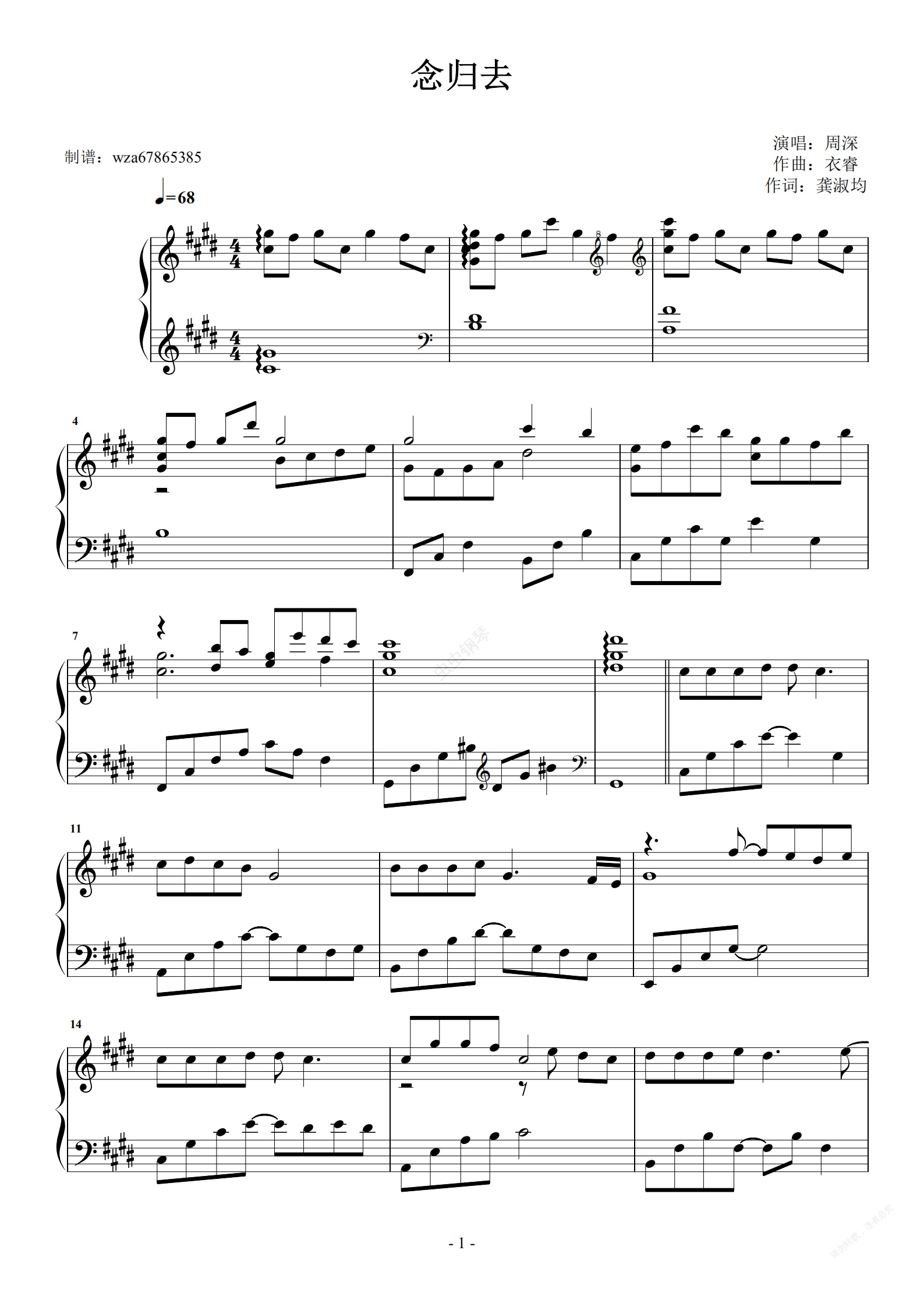 钢琴谱:念归去