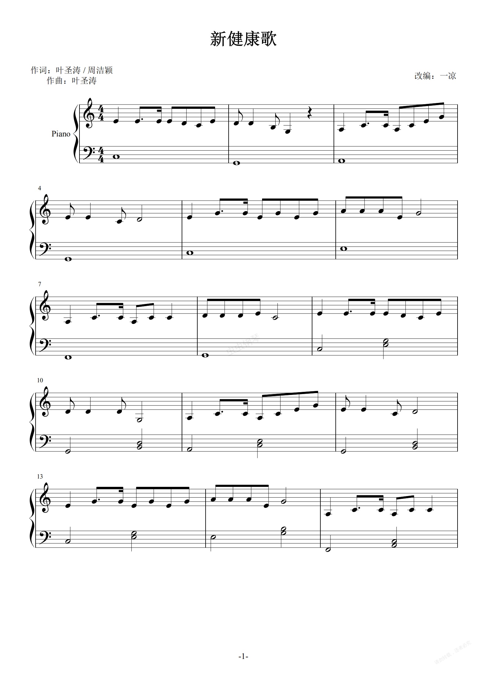 钢琴谱:新健康歌 叶圣涛