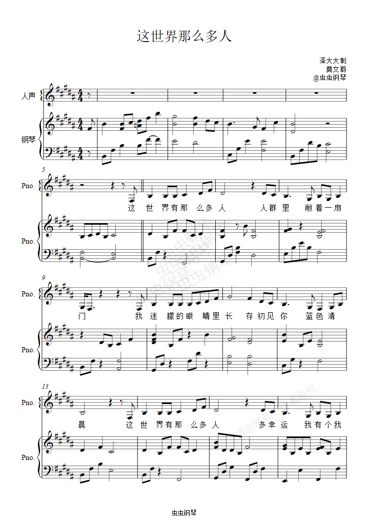 钢琴谱:这世界那么多人【精编弹唱附词】泽大大 莫文蔚