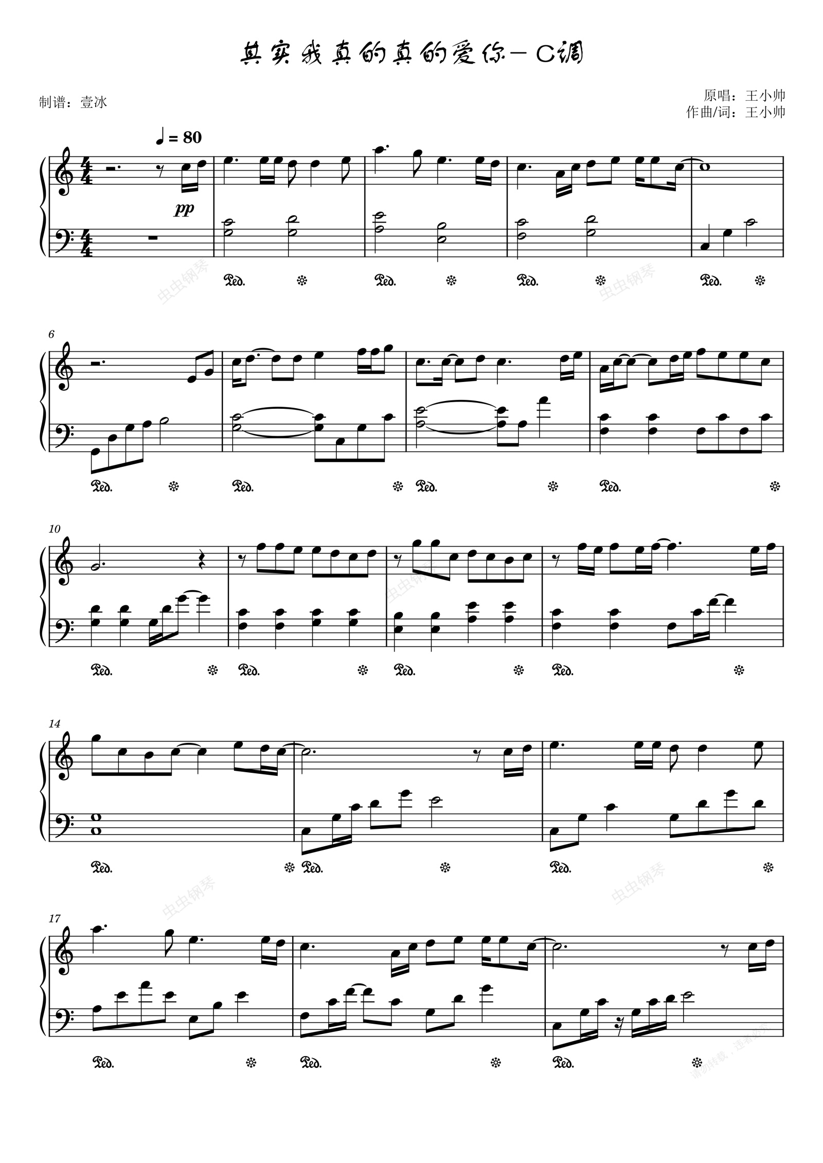 钢琴谱:其实我真的真的爱你//王小帅-C调版