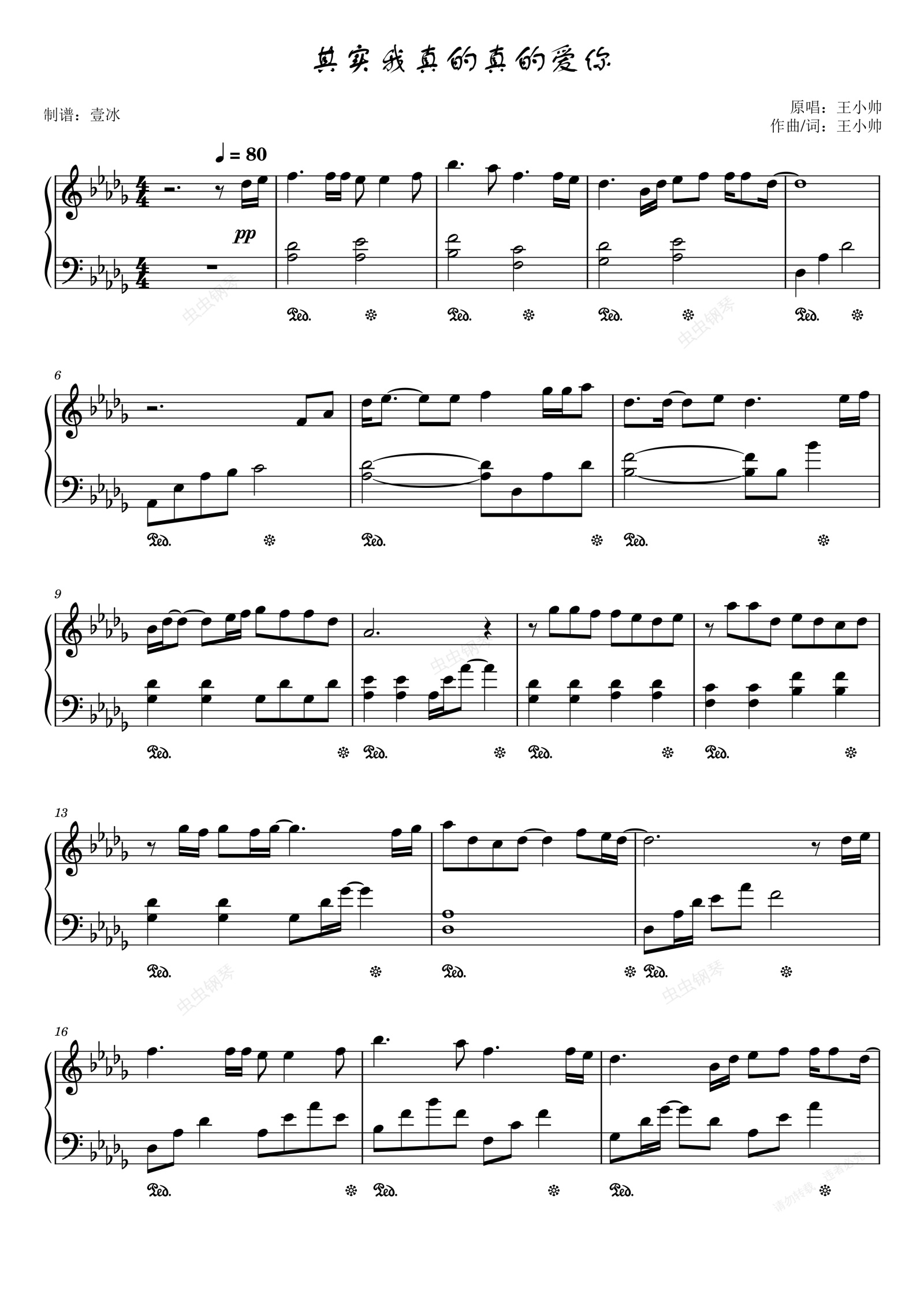 钢琴谱:其实我真的真的爱你//王小帅-原调版