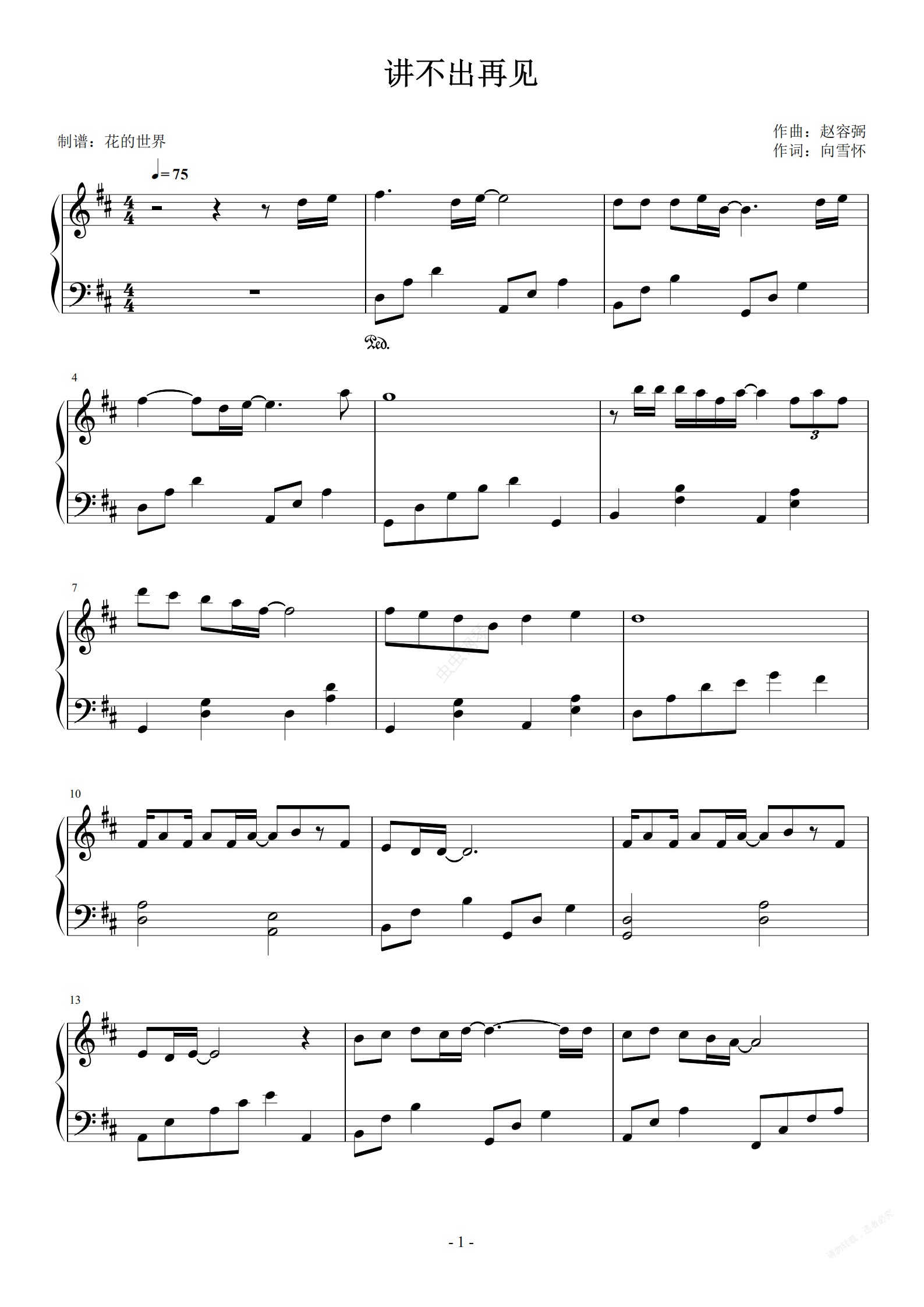 钢琴谱:讲不出再见 原调简易版 谭咏麟  经典流行