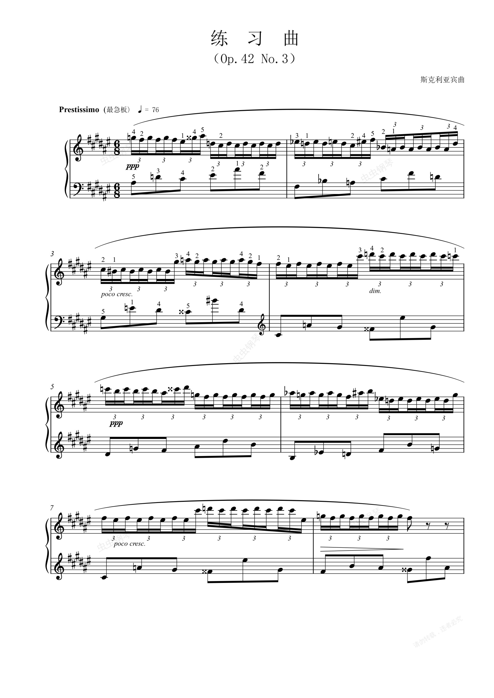 钢琴谱:练习曲 Op.42 No.3,斯克利亚宾