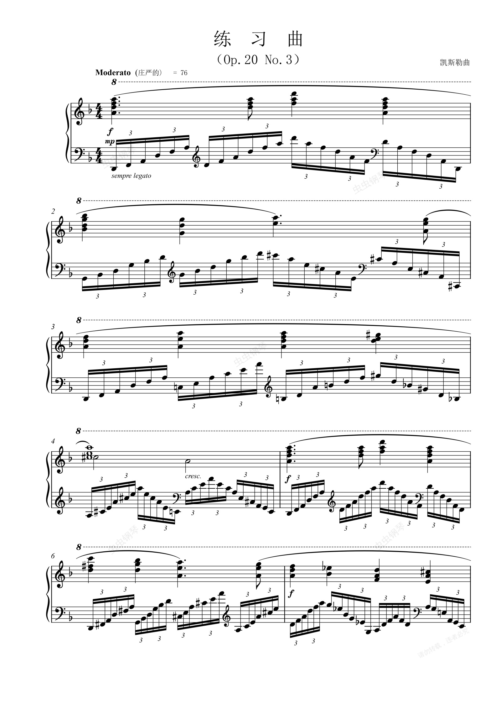 钢琴谱:练习曲 Op.20 No.3,凯斯勒