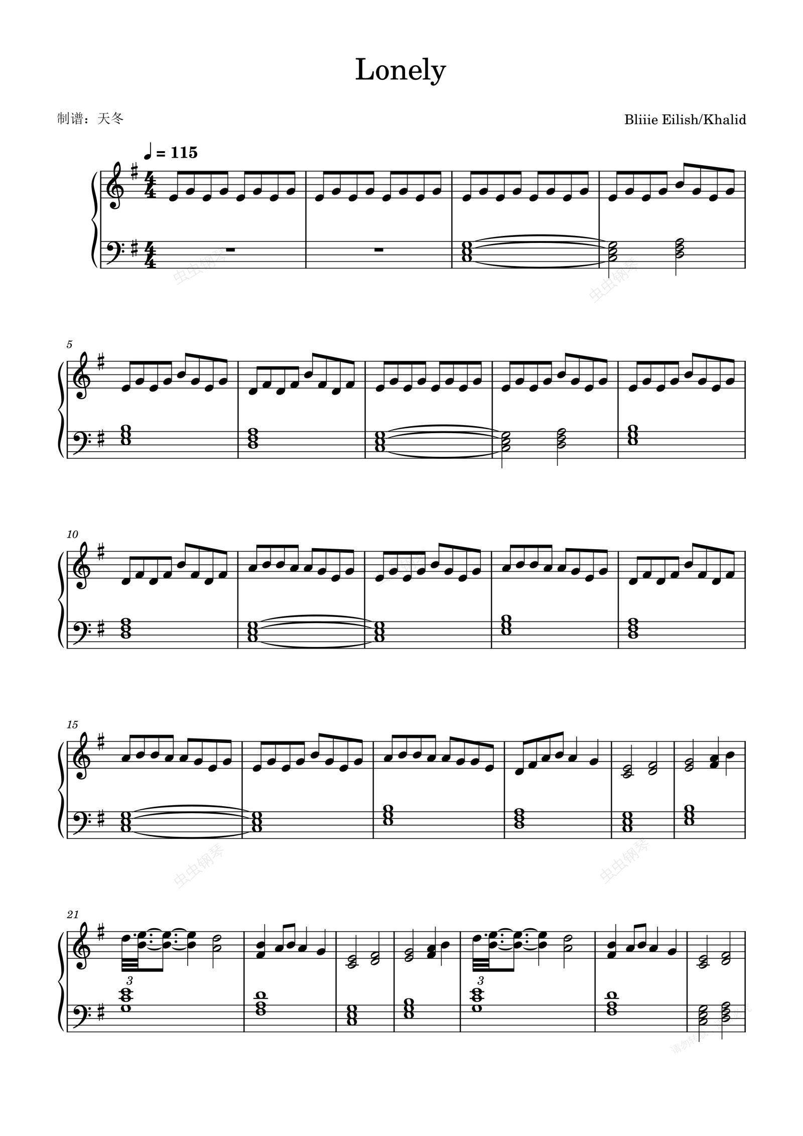 钢琴谱:Lonely-Bliiie Eilish/Khalid