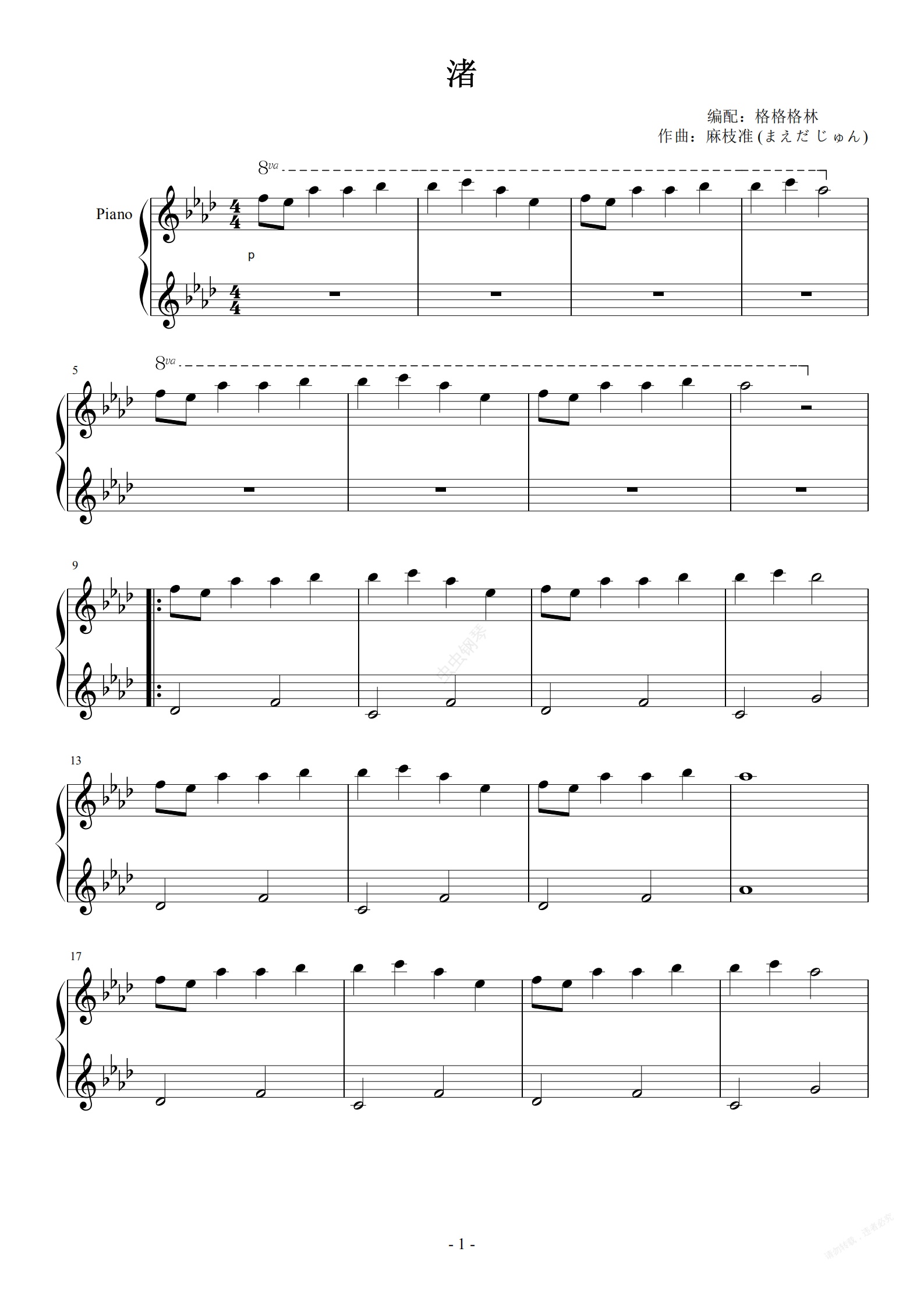 钢琴谱:渚-麻枝准 (まえだ じゅん)