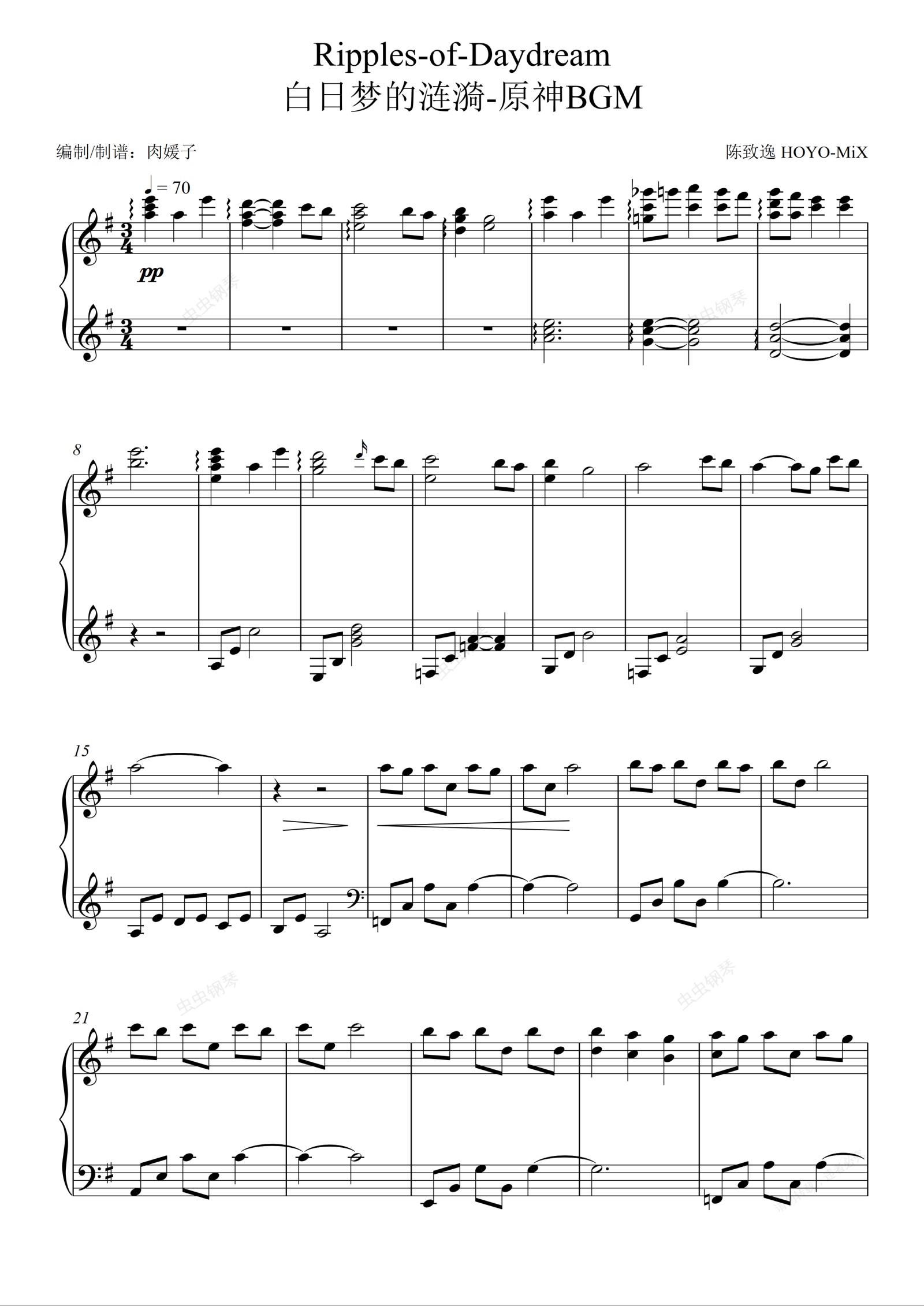 钢琴谱:Ripples-of-Daydream-白日梦的涟漪-原神BGM