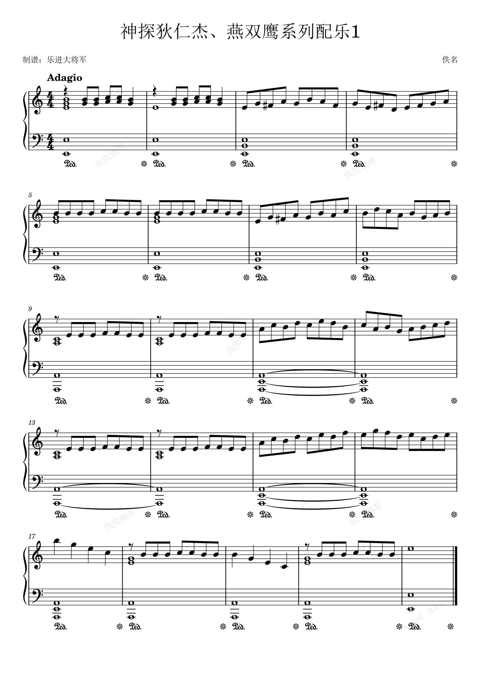 钢琴谱:神探狄仁杰/燕双鹰系列背景音乐1