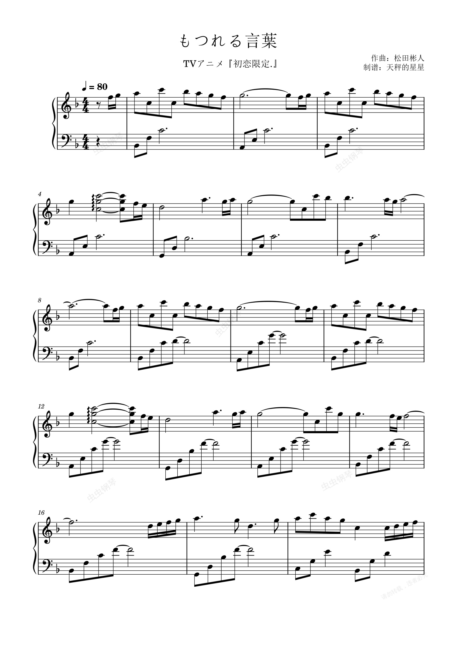 钢琴谱:もつれる言葉-TVアニメ『初恋限定.』