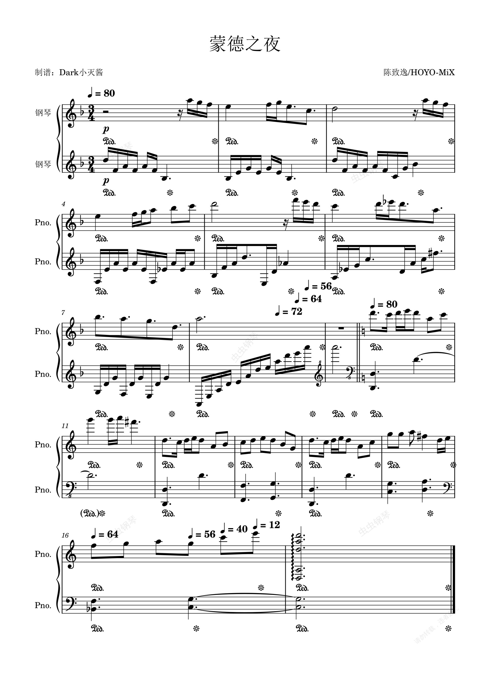 钢琴谱:【原神·蒙德】蒙德之夜