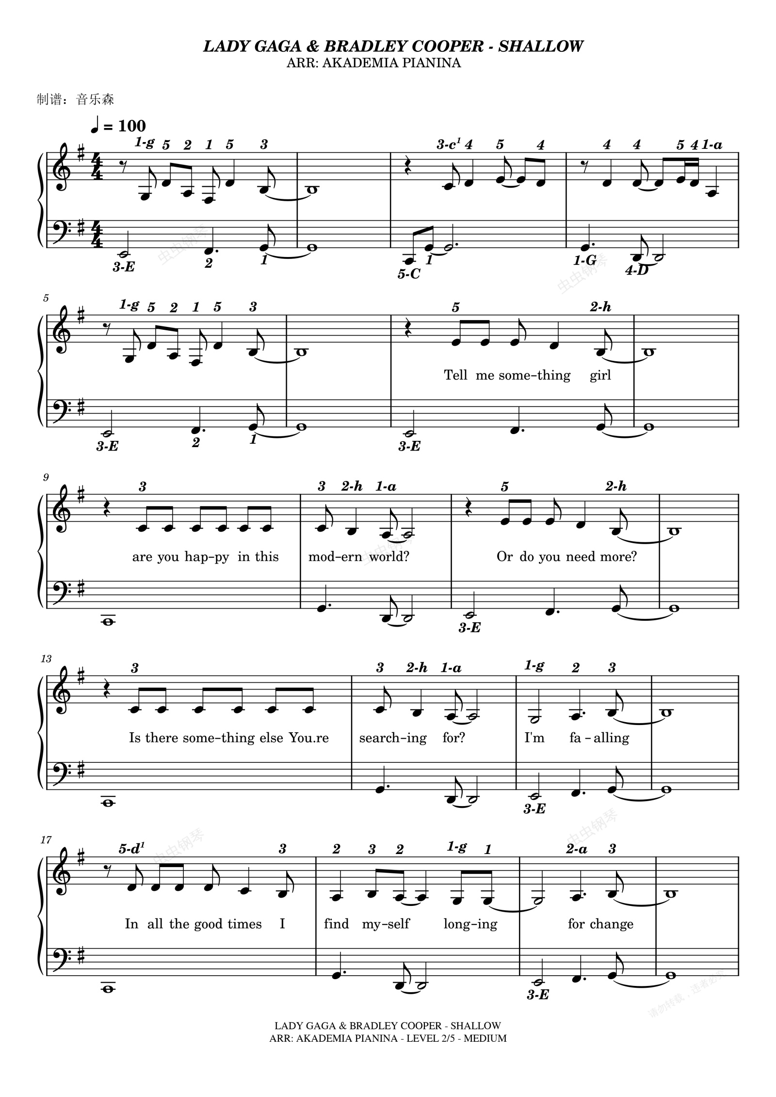 钢琴谱:Shallow-Lady Gaga-一个明星的诞生 电影歌曲