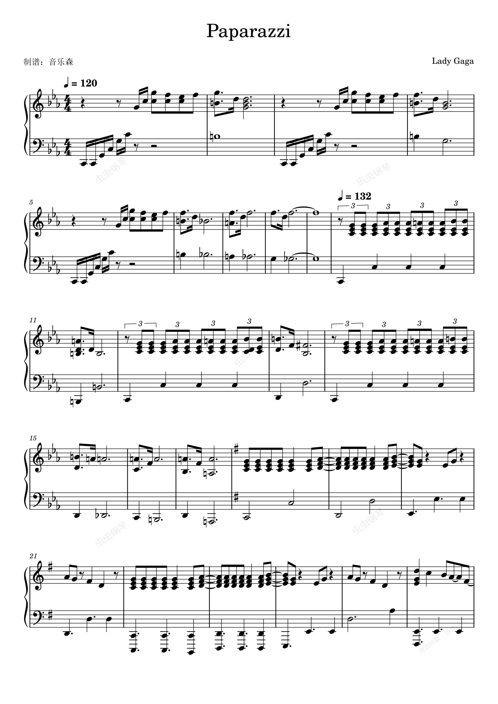 钢琴谱:Paparazzi - Lady Gaga 绯闻女孩 电视剧歌曲