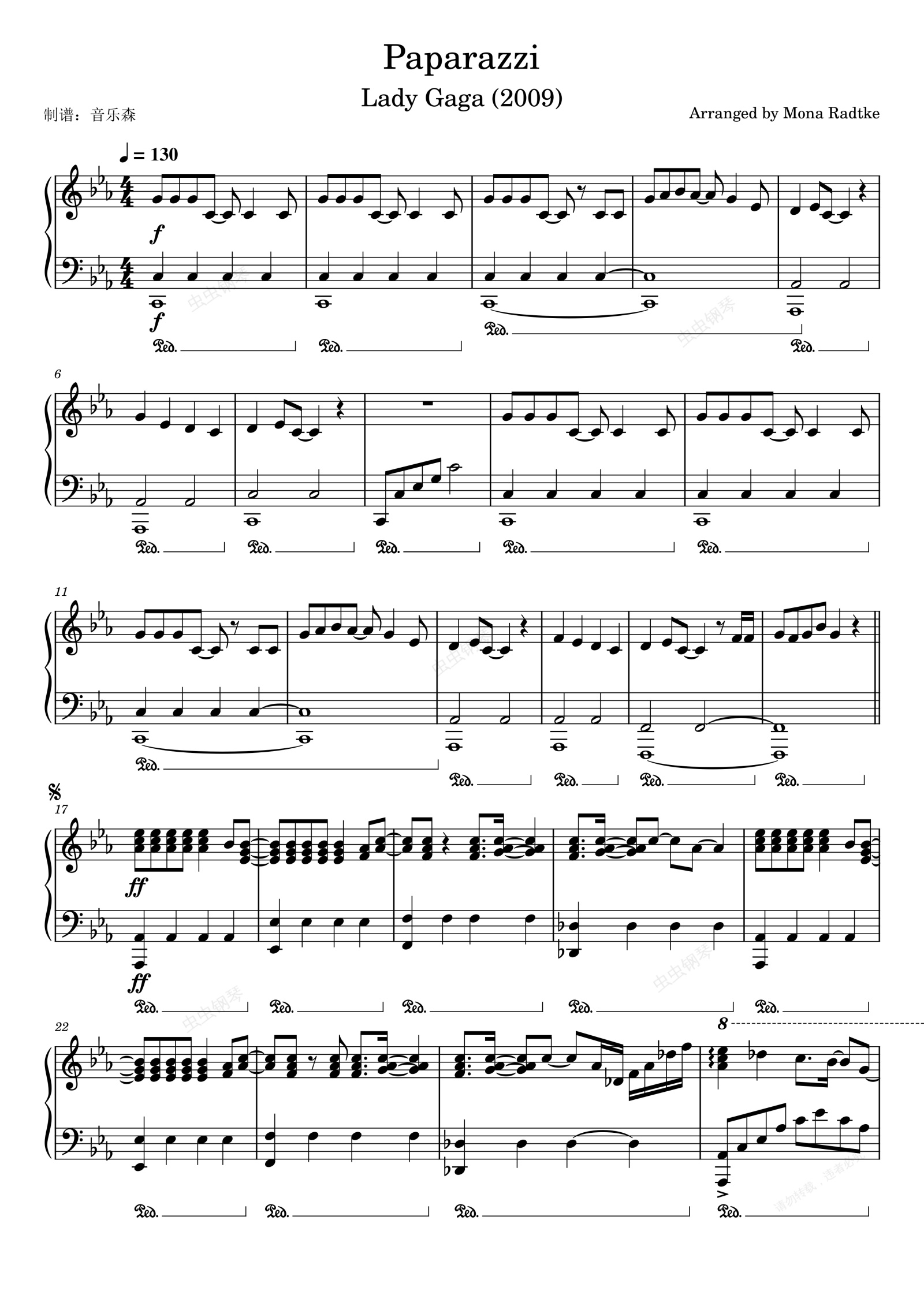 钢琴谱:Paparazzi - Lady Gaga 绯闻女孩 电视剧歌曲