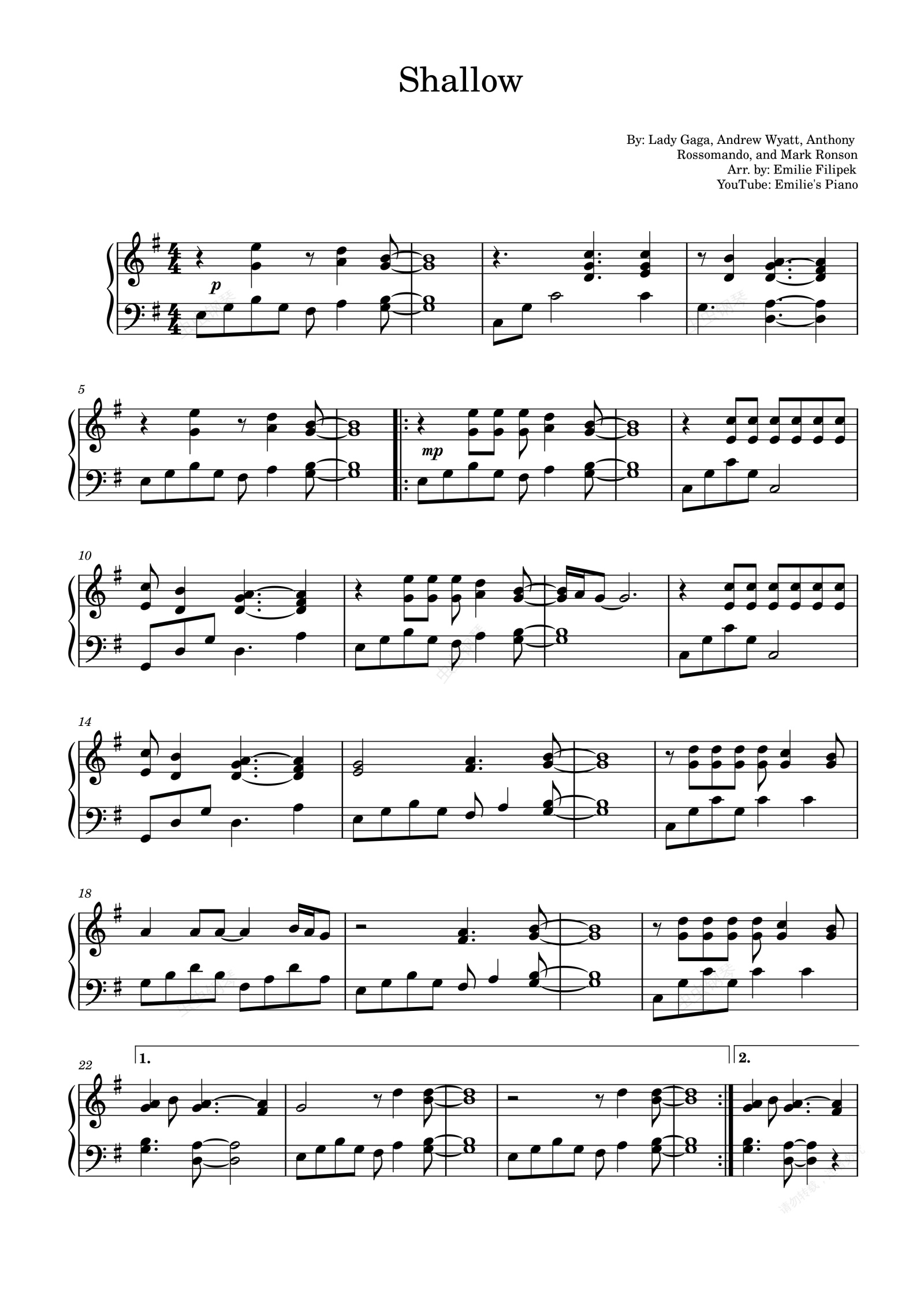 钢琴谱:Shallow-Lady Gaga-一个明星的诞生 电影歌曲