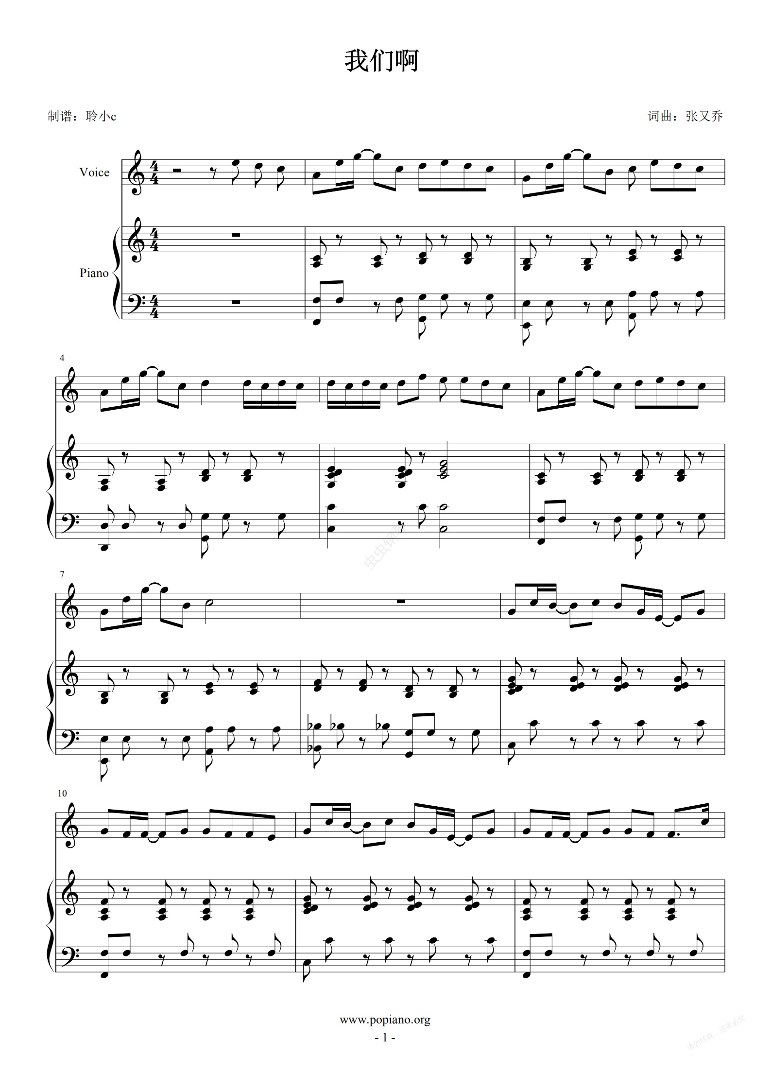 钢琴谱:我们啊 C调
