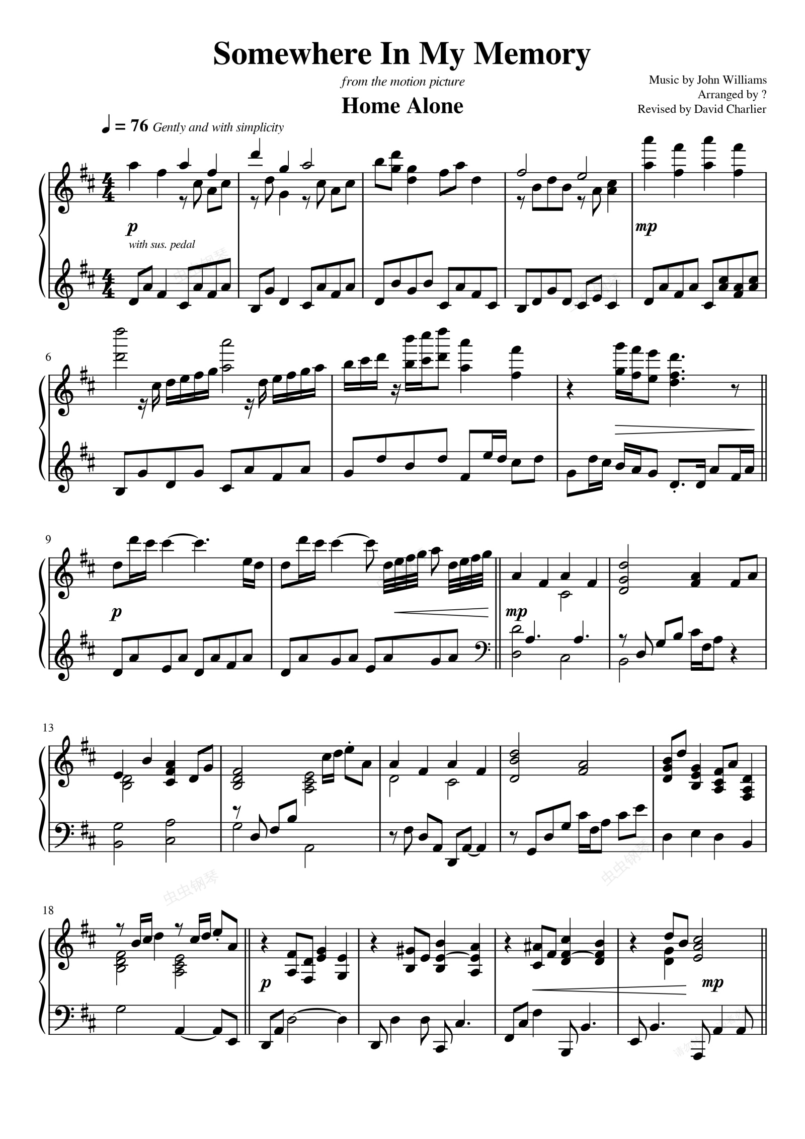 钢琴谱:Somewhere In My Memory 小鬼当家2