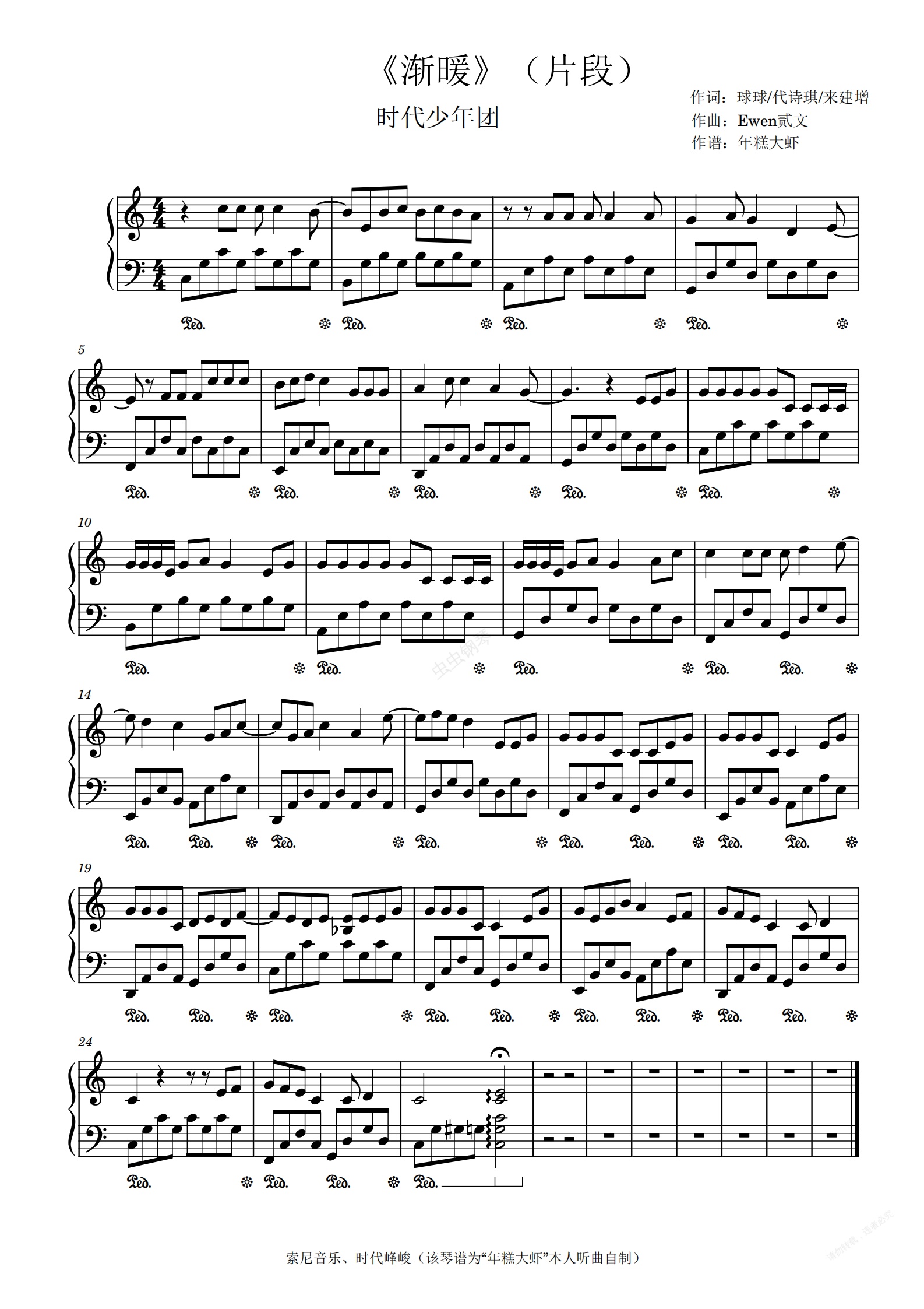 钢琴谱:渐暖-时代少年团(C大调)