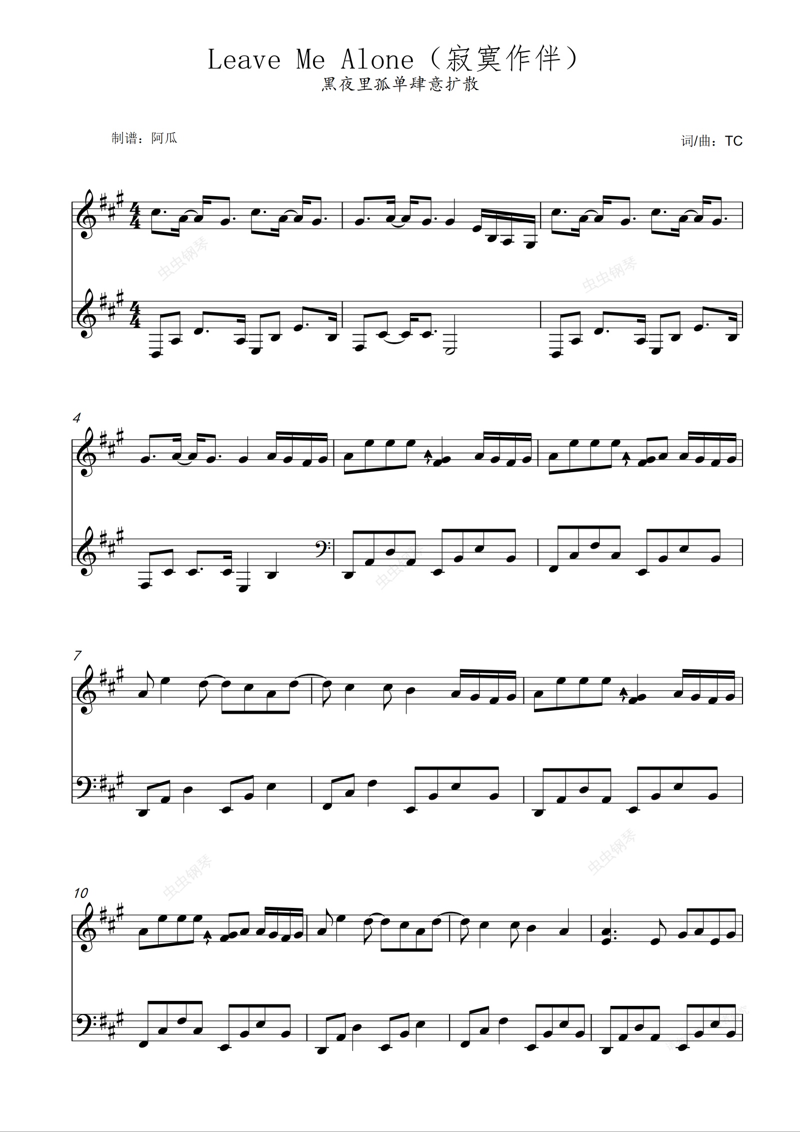钢琴谱:Leave Me Alone(寂寞作伴)-TC