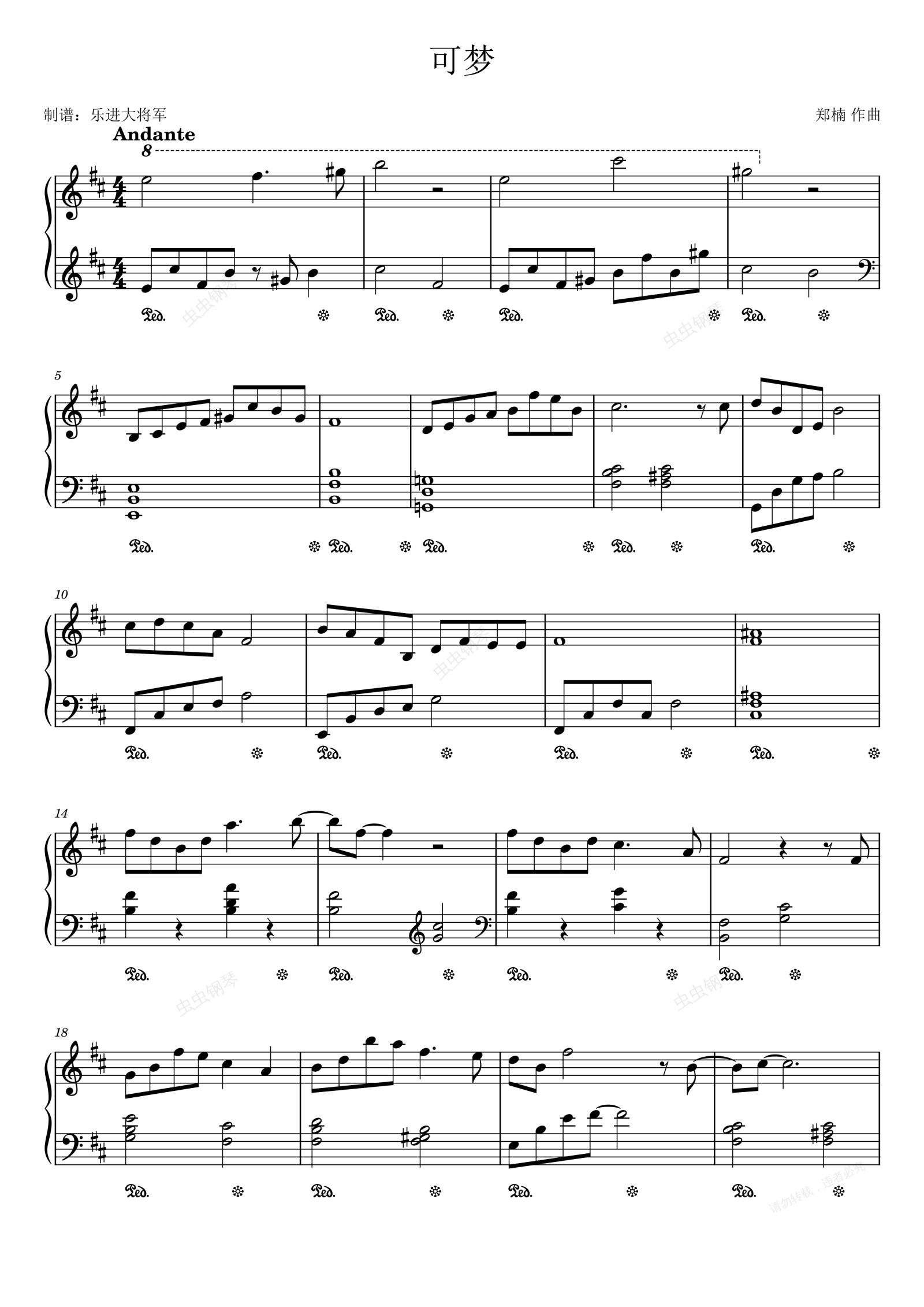 钢琴谱:周深演唱 《可梦》 宝可梦25周年纪念曲 原调