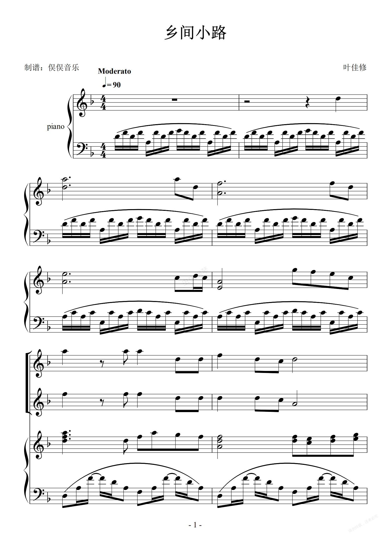 钢琴谱:乡间小路 - 三声部合唱伴奏谱