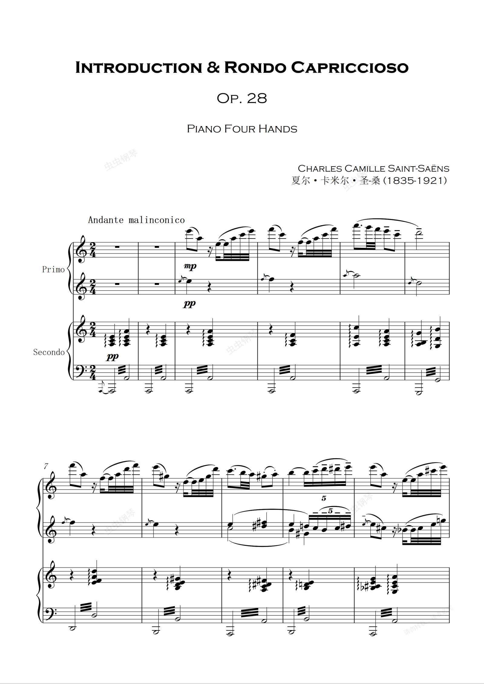 钢琴谱:【四手联弹】引子与回旋随想曲-圣桑