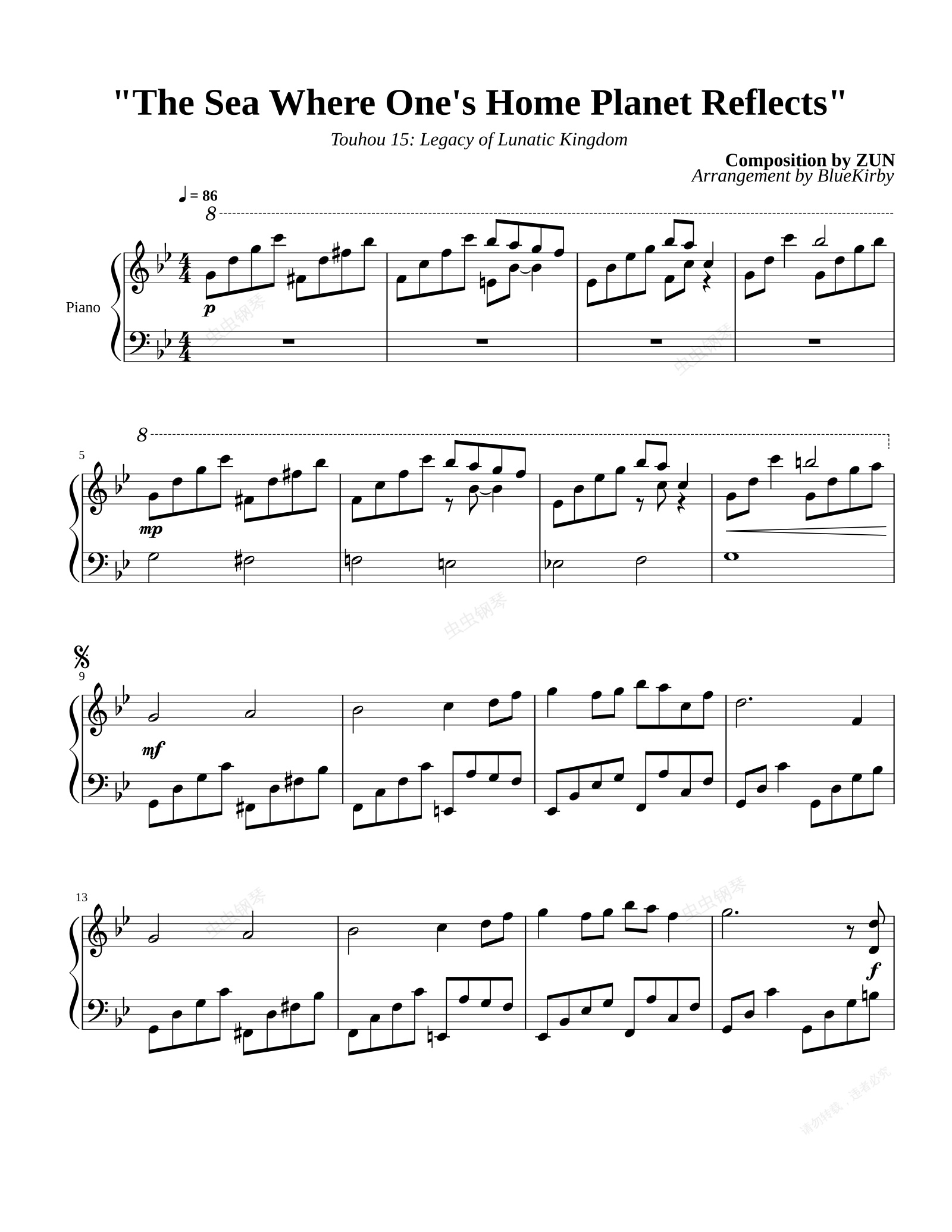 钢琴谱:【东方绀珠传】故乡之星倒映之海