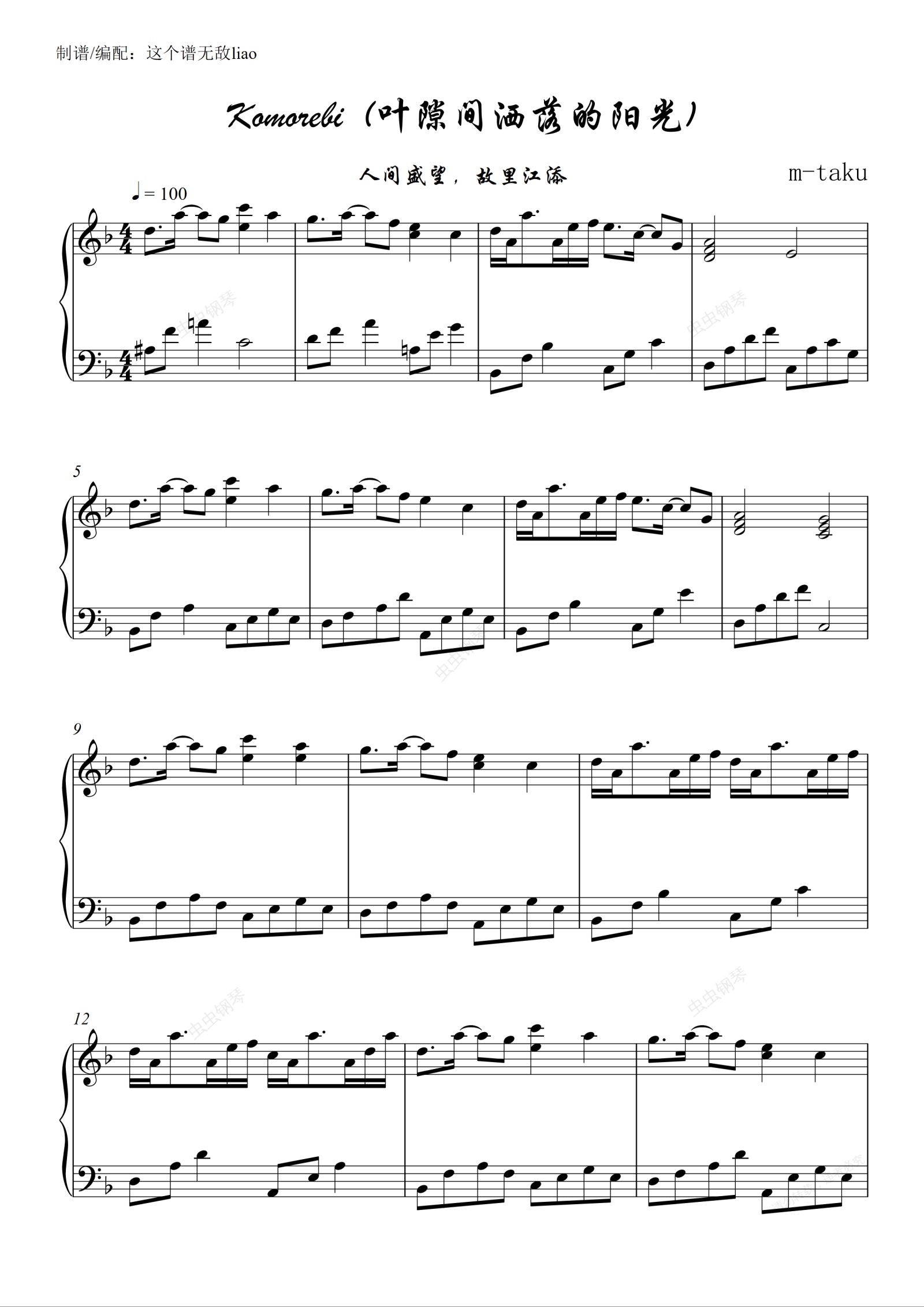 钢琴谱:Komorebi (叶隙间洒落的阳光)
