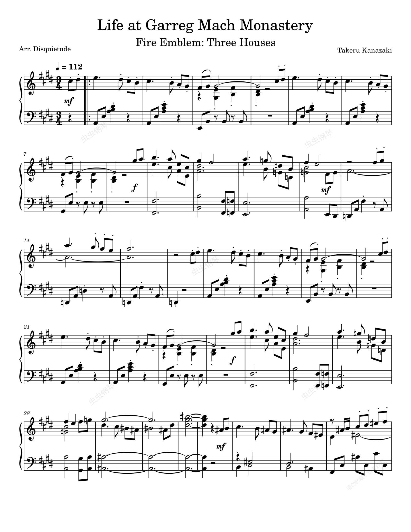 钢琴谱:ガルグ=マク大修道院の日常 火焰之纹章:风花雪月