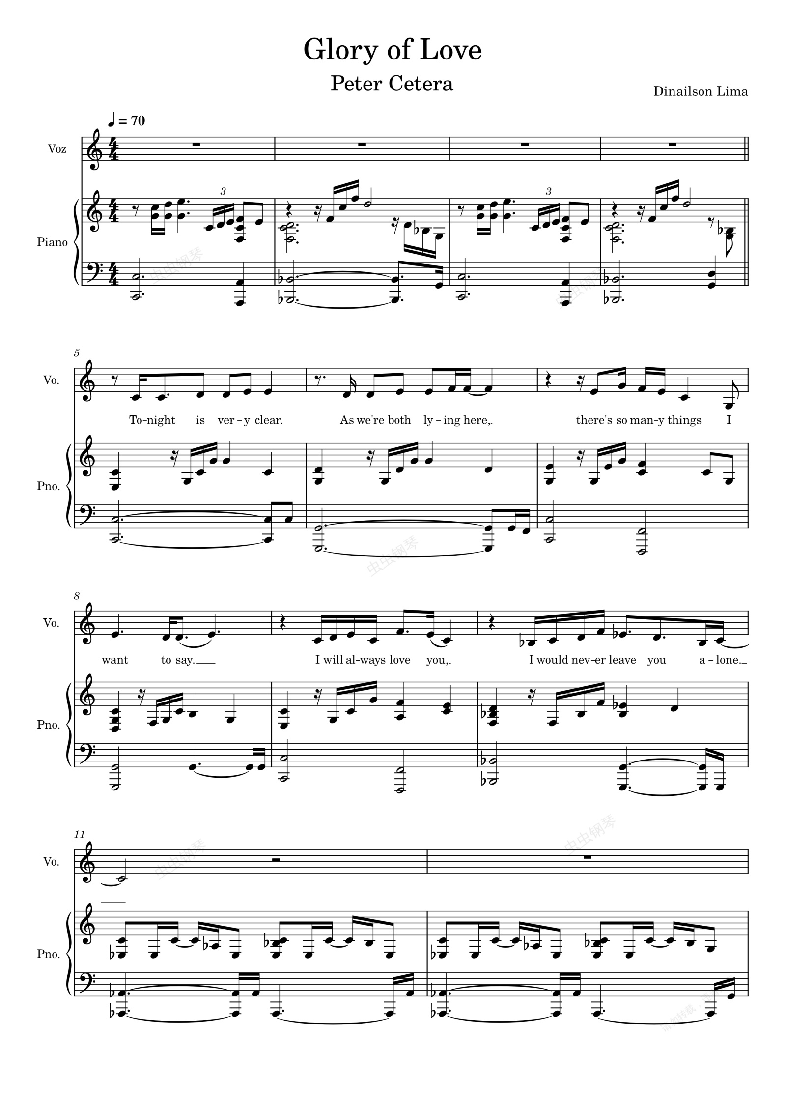 钢琴谱:Glory of Love Peter Cetera