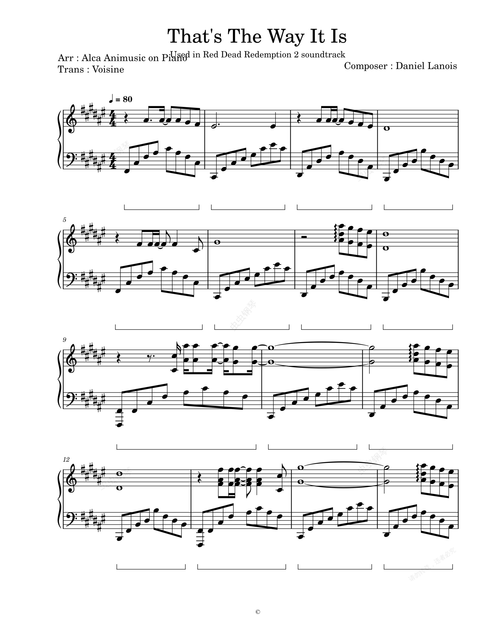 钢琴谱:That's the Way It Is  荒野大镖客:救赎2