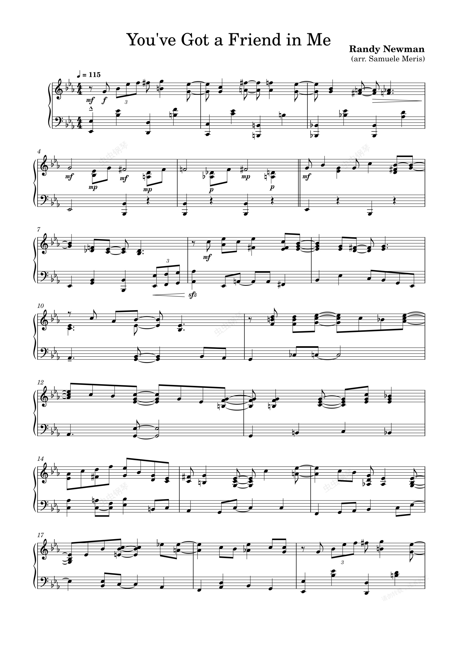 钢琴谱:You've Got a Friend in Me 玩具总动员4