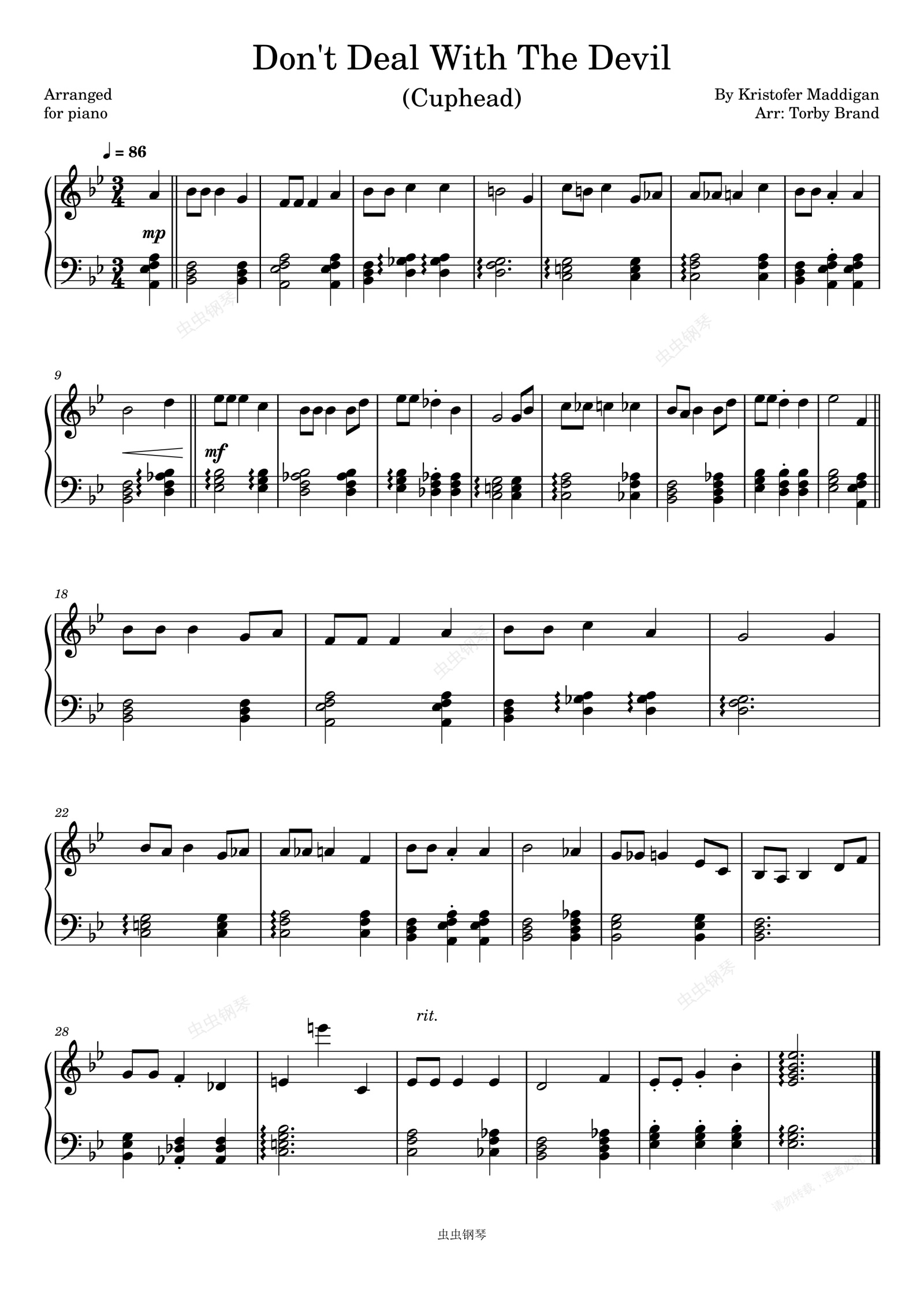 钢琴谱:Cuphead 游戏 Don't Deal with the Devil
