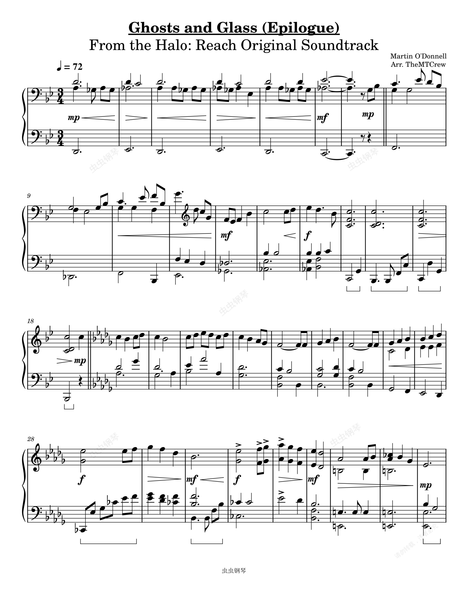 钢琴谱:刀剑神域 动画-Ghosts and Glass