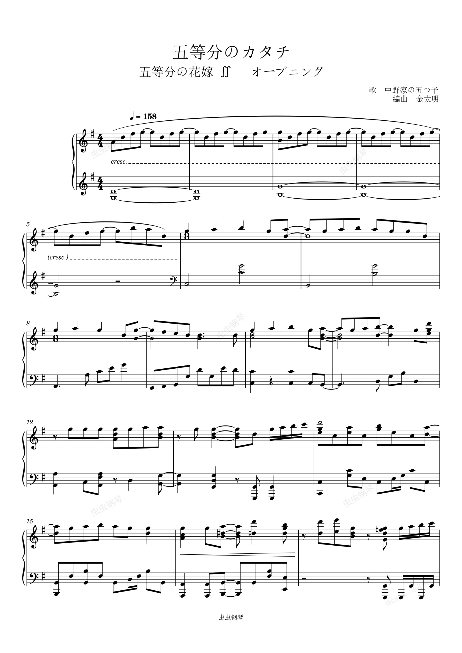 钢琴谱:五等分のカタチ-五等分的新娘 第二季 动画