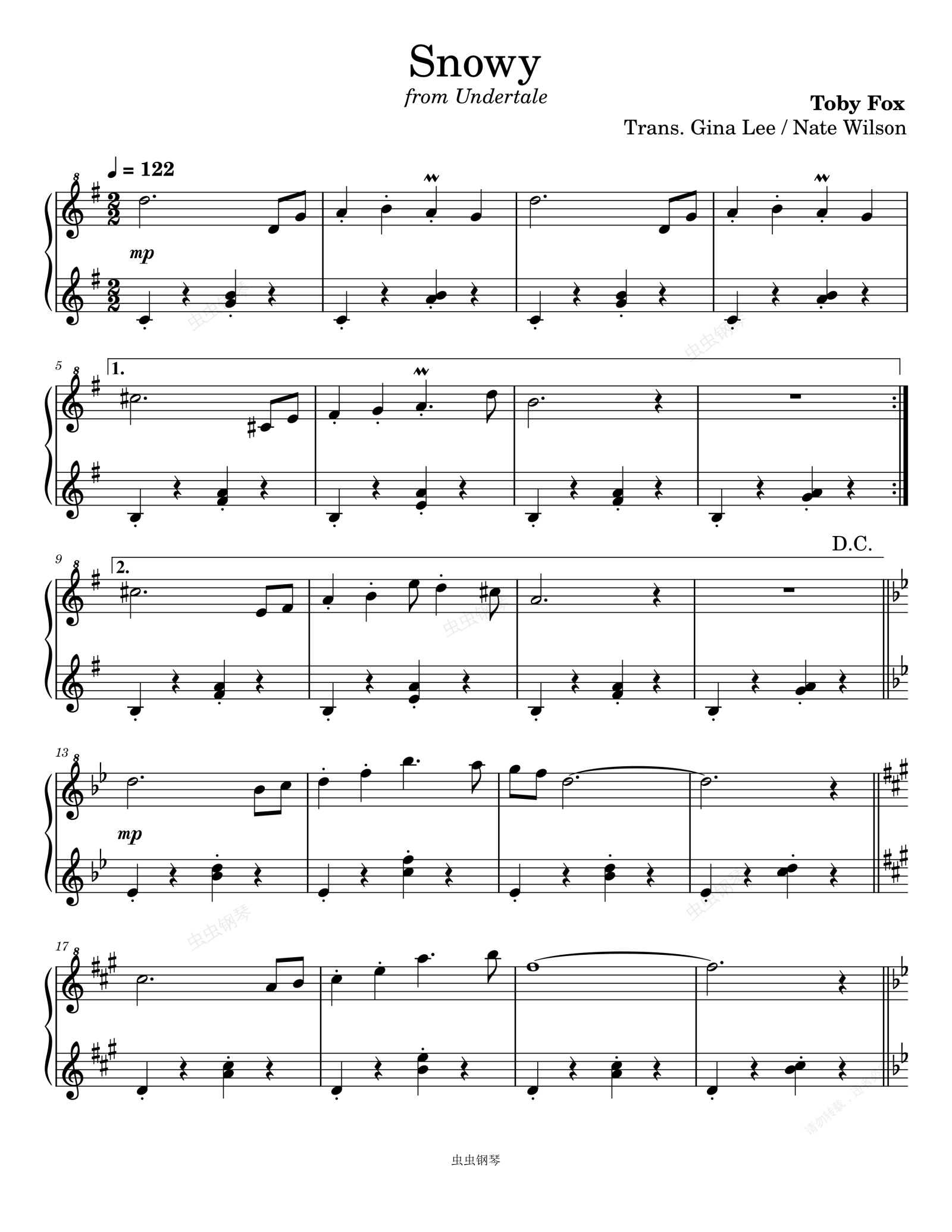 钢琴谱:UNDERTALE (传说之下) 游戏-Snowy-Toby Fox