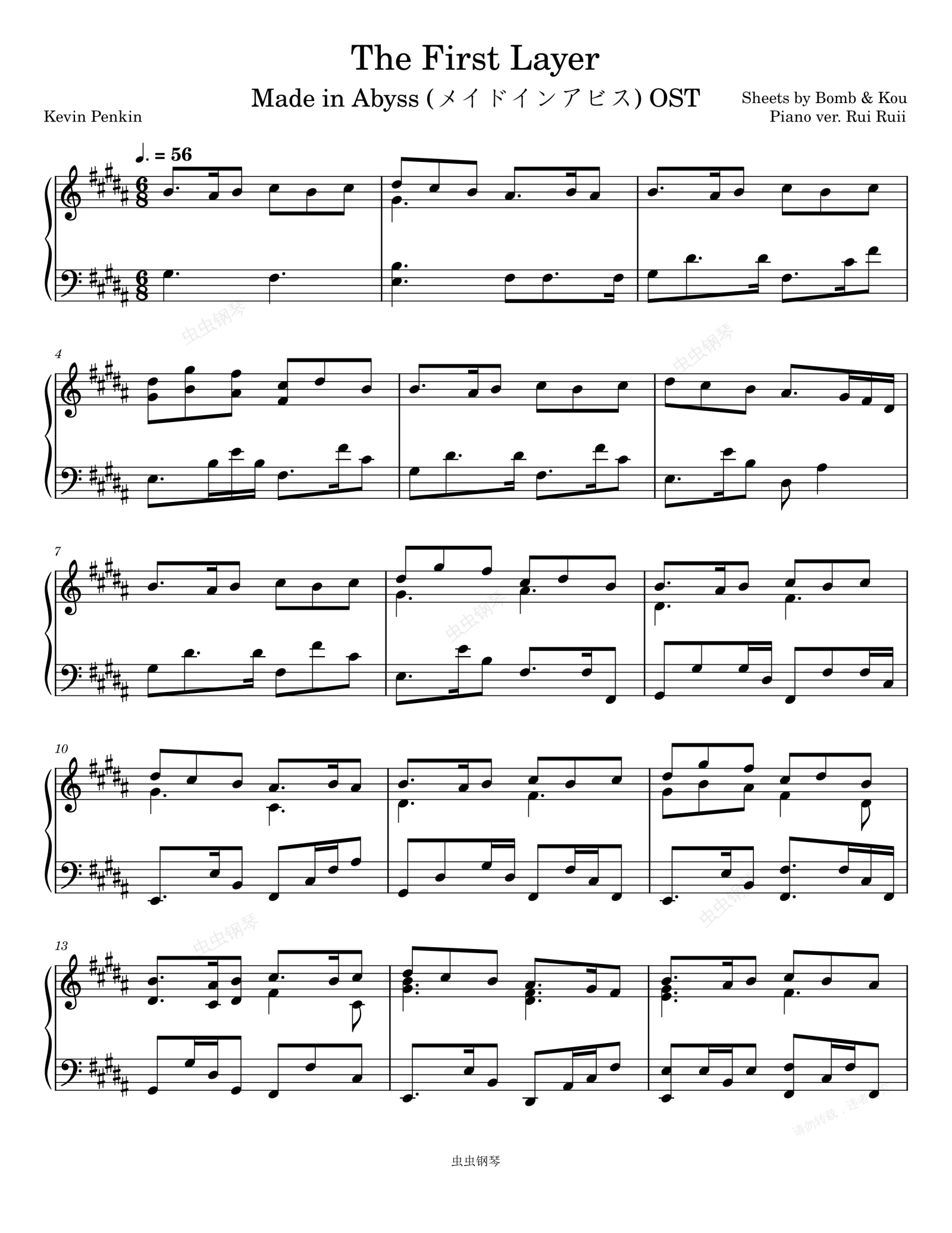 钢琴谱:来自深渊 动画-The First Layer-Kevin Penkin