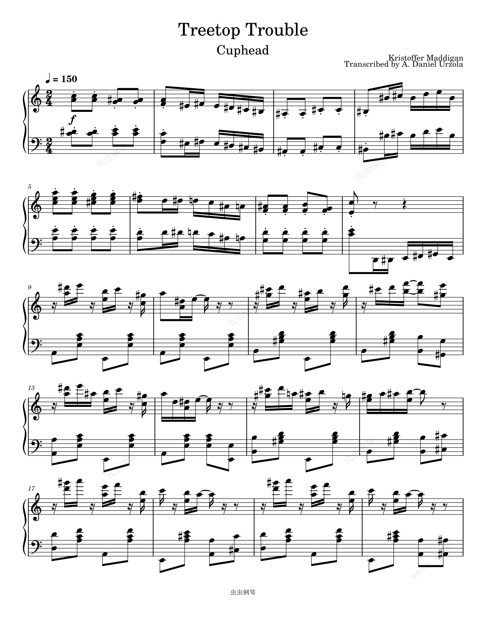钢琴谱:茶杯头 游戏-Treetop Trouble