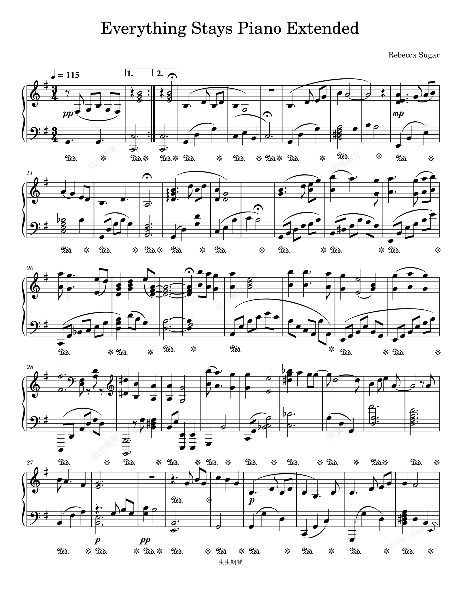 钢琴谱:探险活宝 动画-Everything Stays Piano Extended