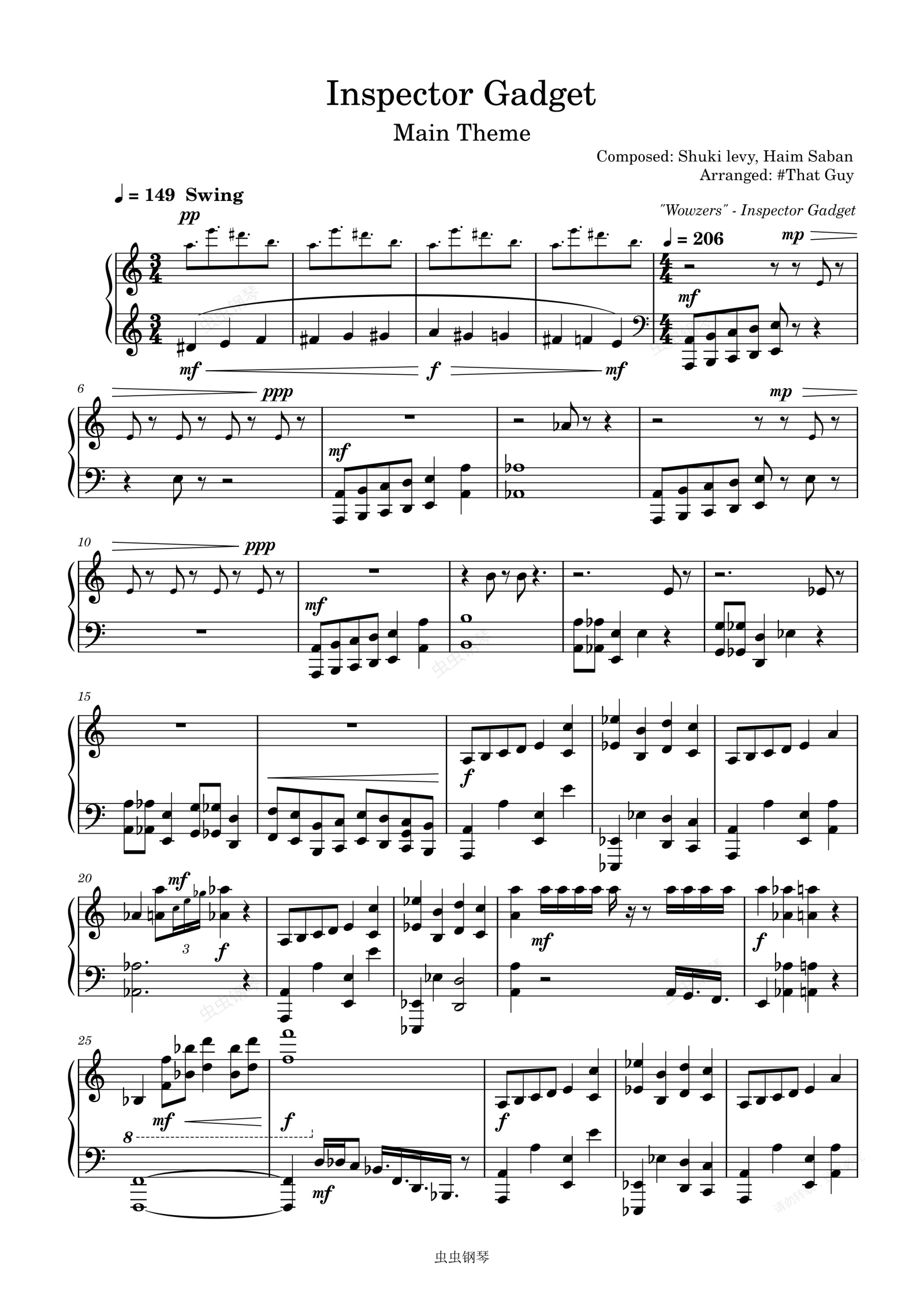 钢琴谱:G型神探 电影  Inspector Gadget Main Theme