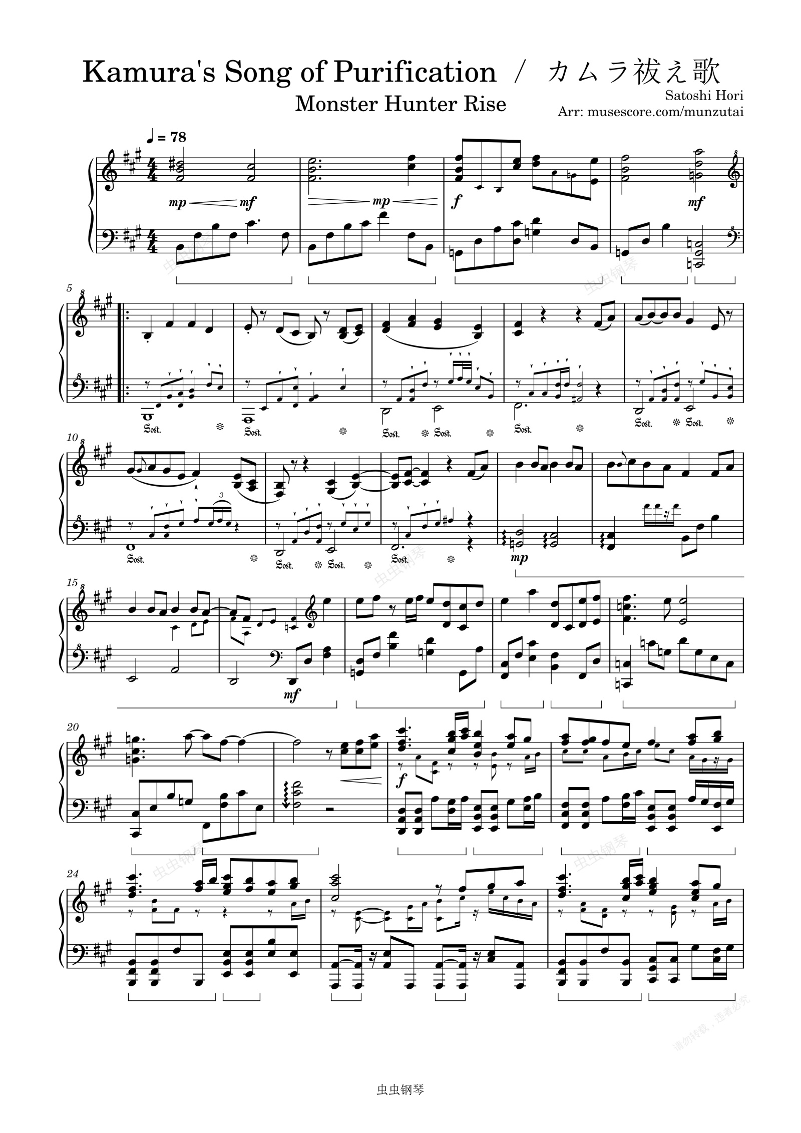 钢琴谱:怪物猎人崛起 游戏-カムラ祓え歌