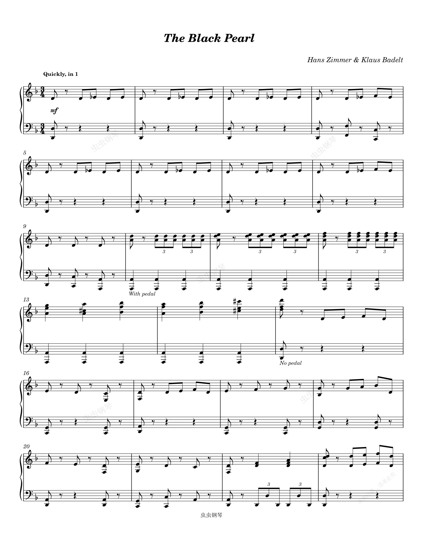 钢琴谱:加勒比海盗 电影-The Black Pearl