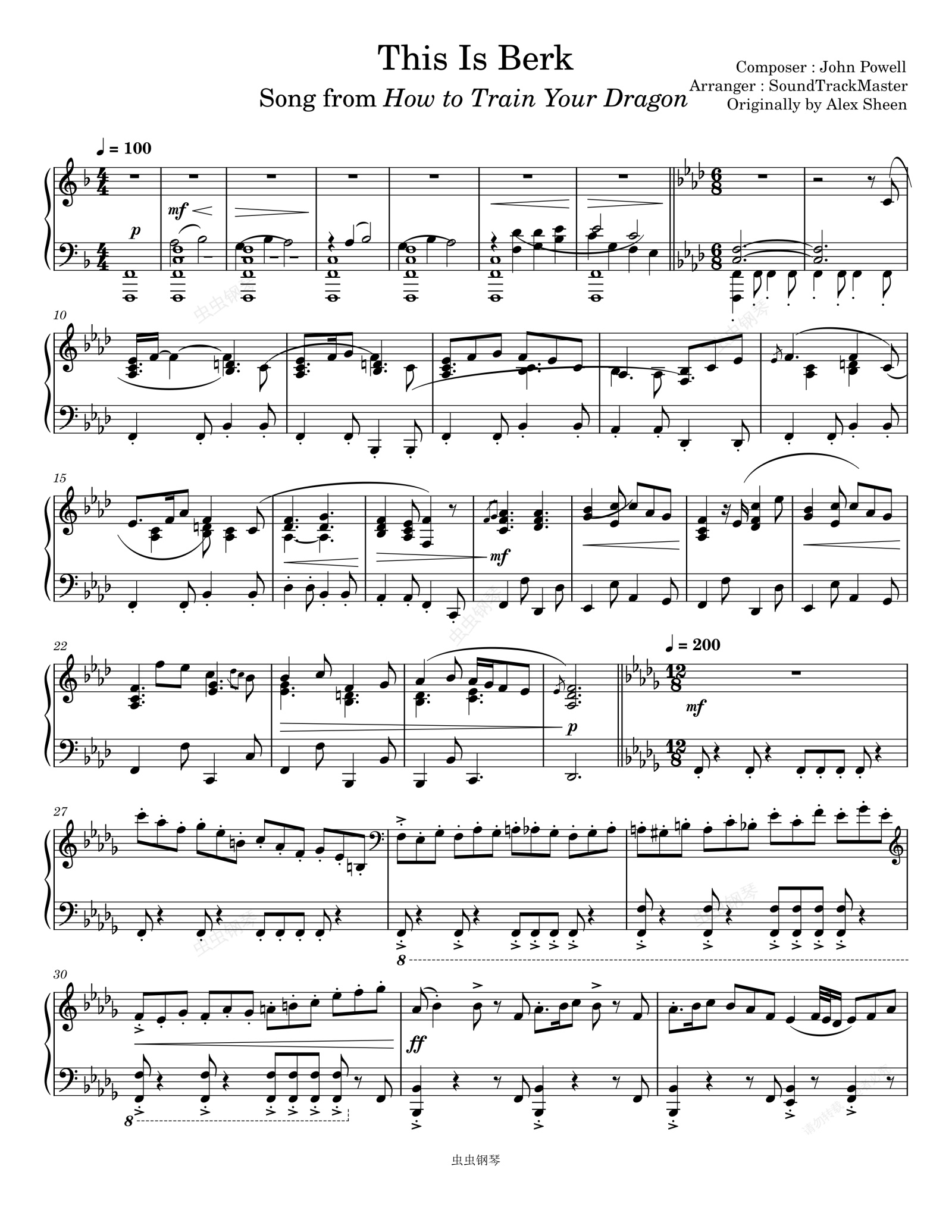 钢琴谱:驯龙高手 动画电影-This Is Berk-John Powell