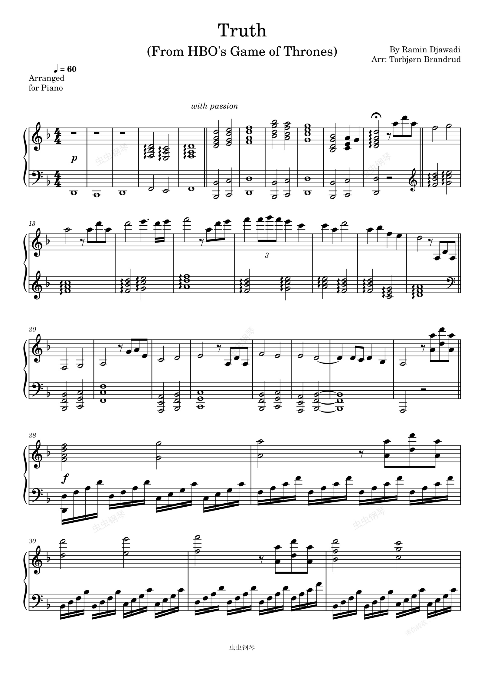 钢琴谱:权力的游戏 美剧-Truth-Ramin Djawadi