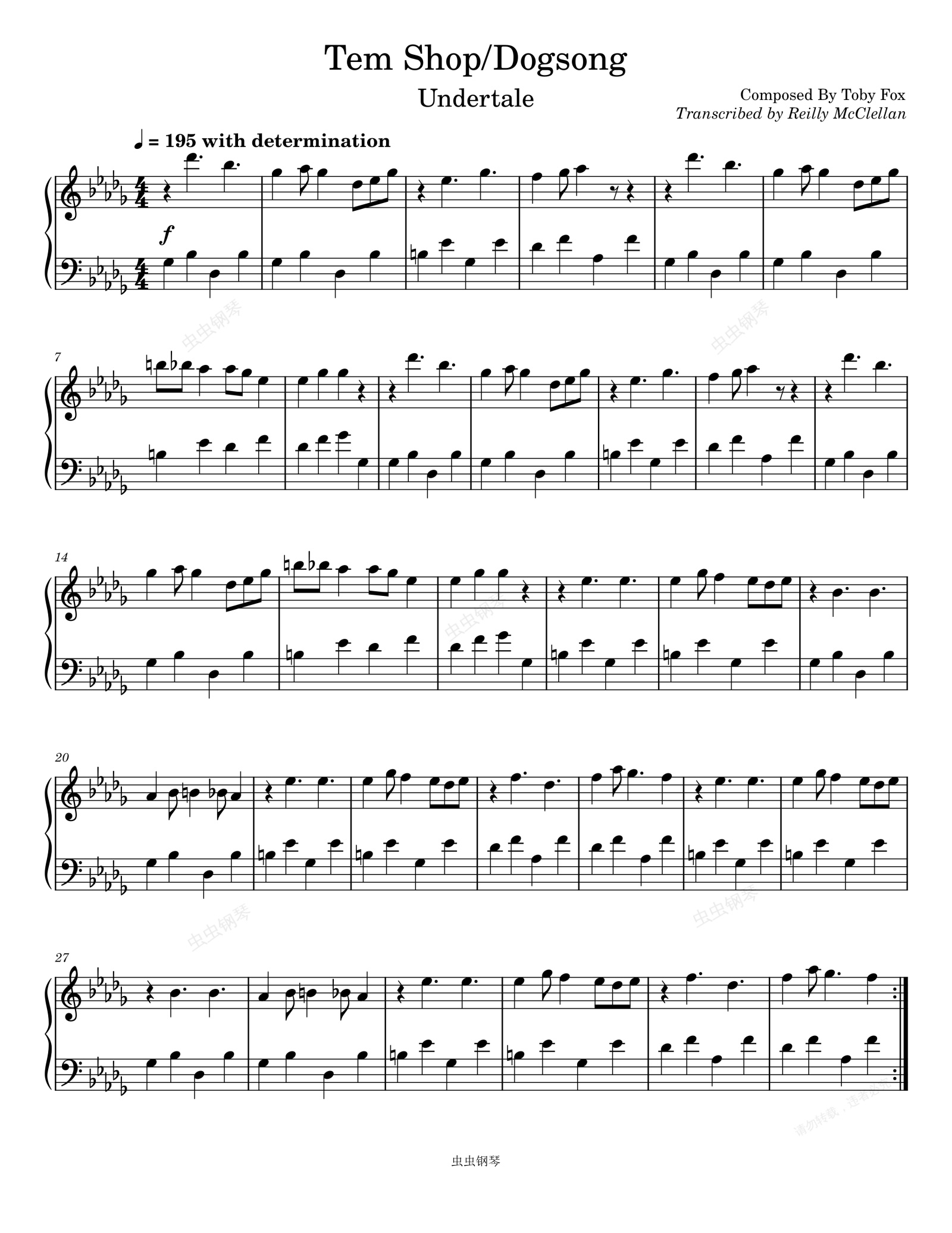 钢琴谱:UNDERTALE (传说之下) 游戏 -Tem Shop/Dogsong