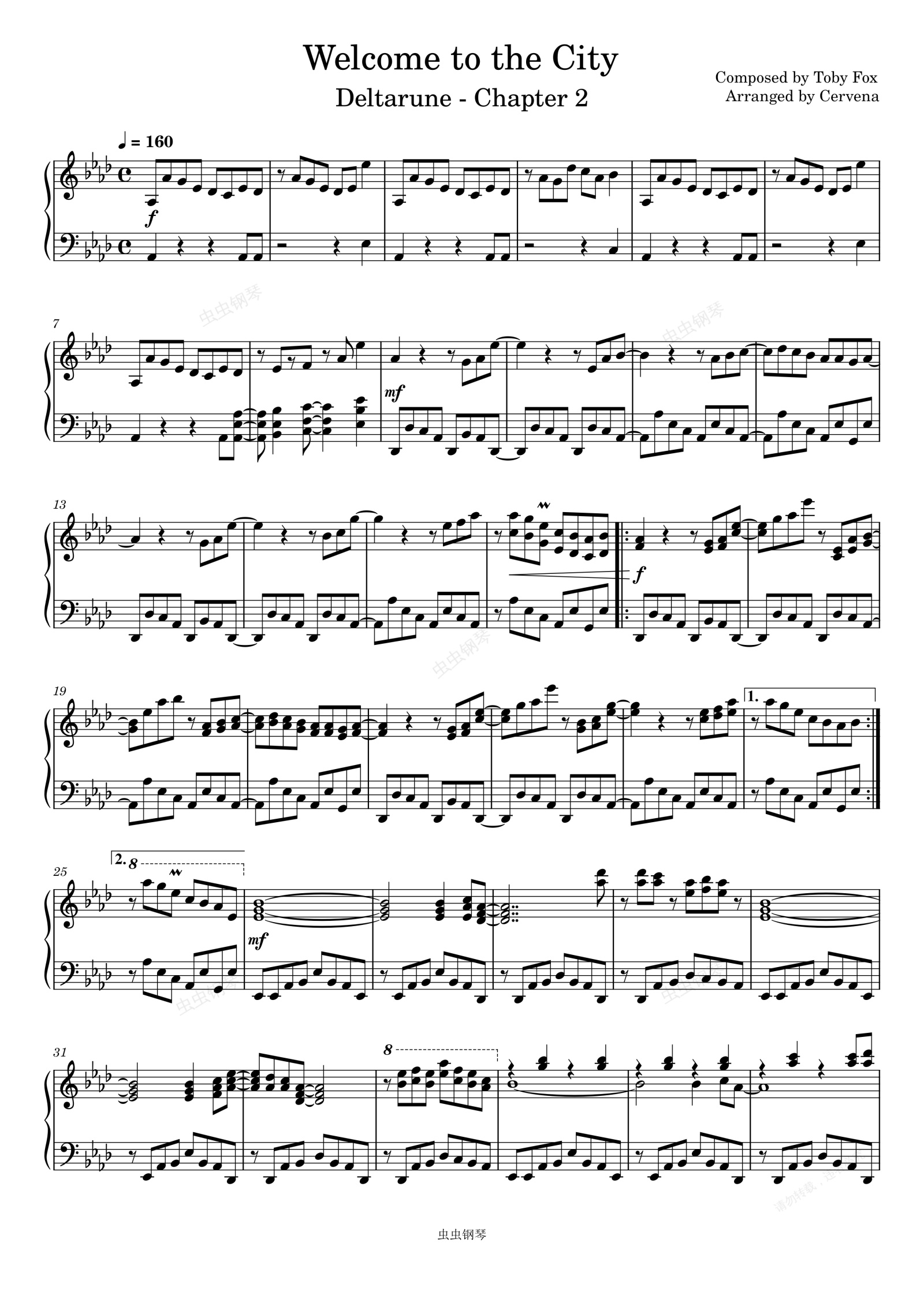 钢琴谱:DELTARUNE (三角符文) 游戏  WELCOME TO THE CITY